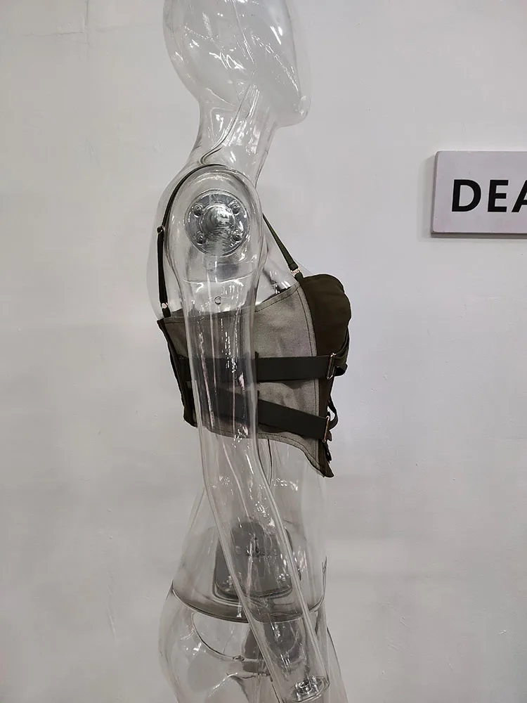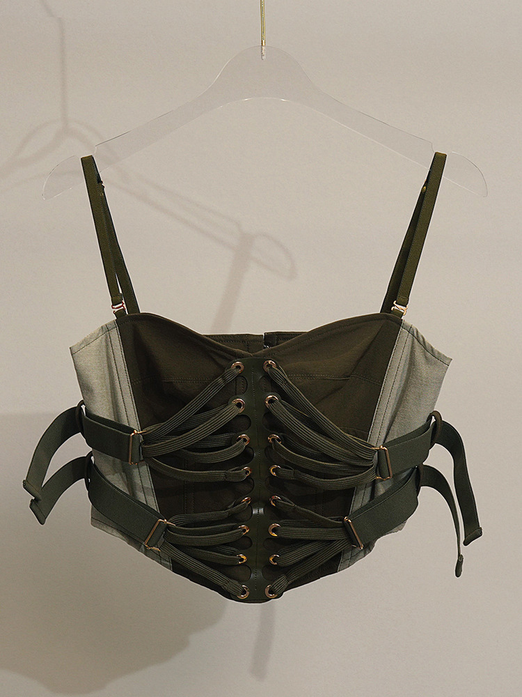 FREE SHIPPING Women Trend Fashion Lace up Chic Suspender Vest Off Shoulder Slim Strap Outwear JKP7178