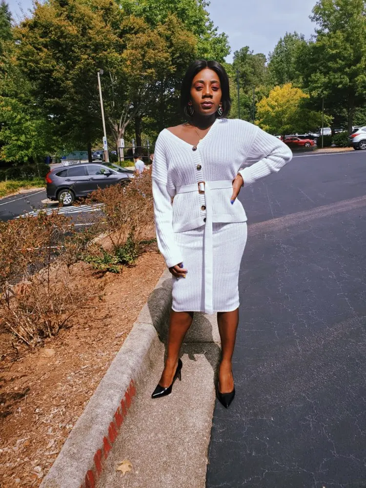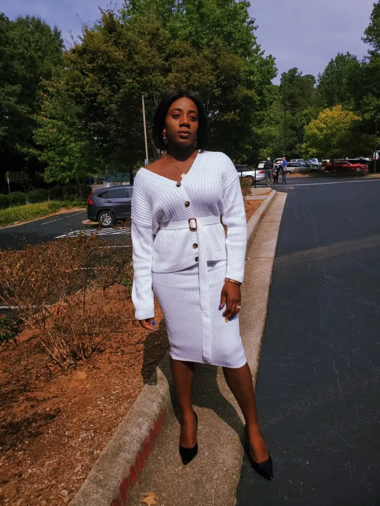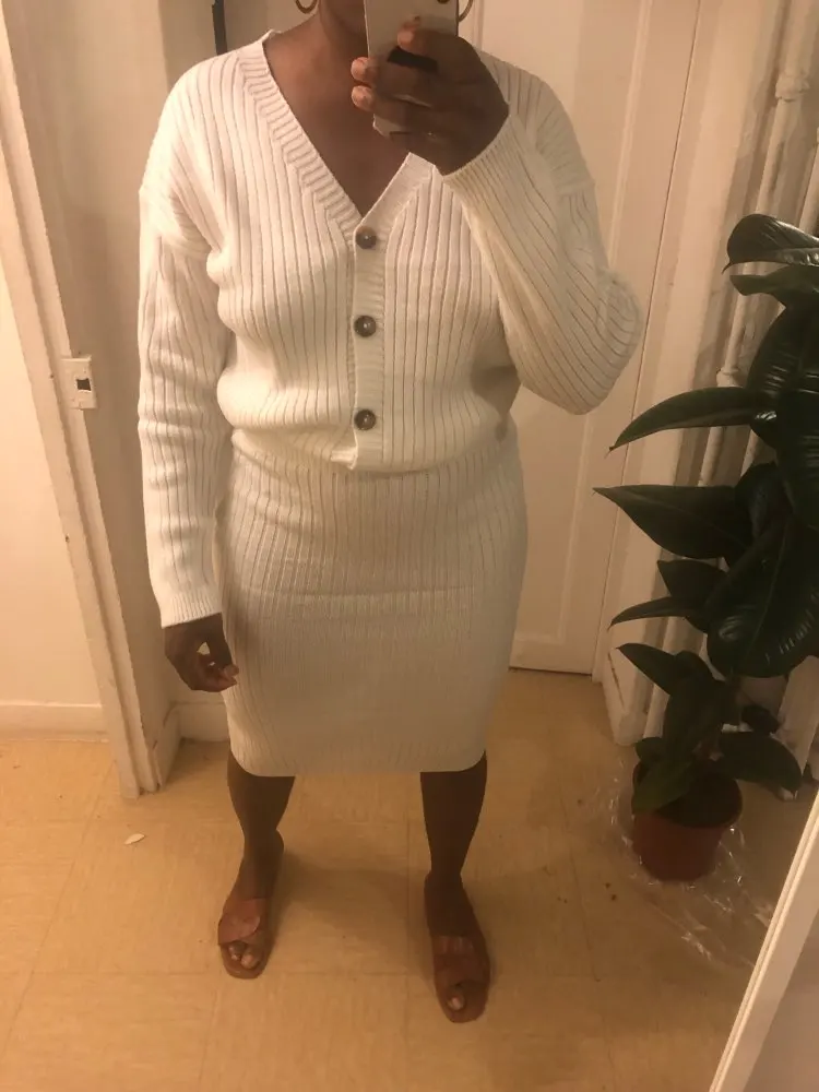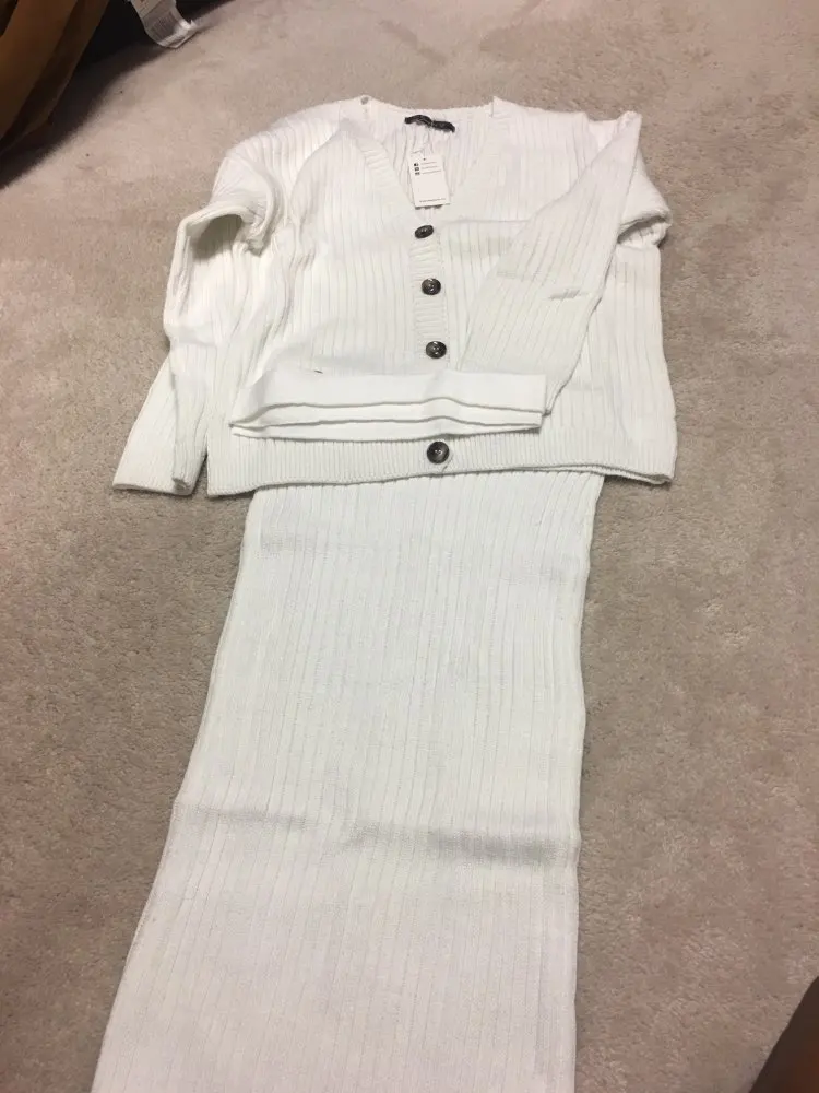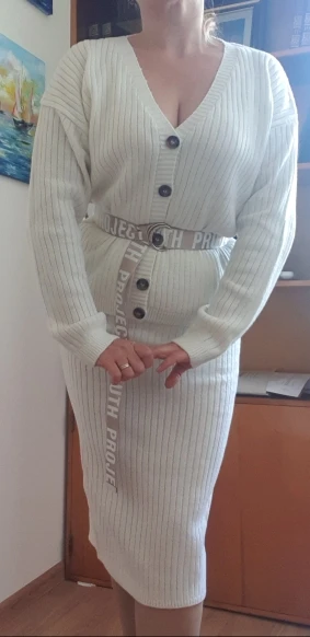 Chic suit. Height 162 cm parameters 96/72/96 size l as the picture. The length of the skirt to the middle of the calf, the length of the sleeves-to the nails))). The skirt on my parameters slightly tightens, the pattern is not broken. You can still put + 20 cm). The jacket at first seems huge, three sizes larger. But under the belt it turns out one in one as in the photo of the store, the oversize full))). The only thing-the belt is a full, short, thinner buckle. I will wear with others). The workmanship is high, no thread and no smell. Very warm, winter! Delivery is only 2 weeks. I recommend to buy!