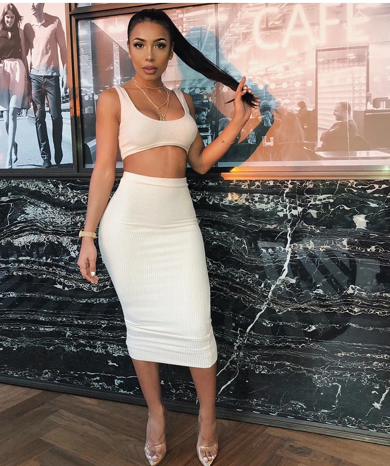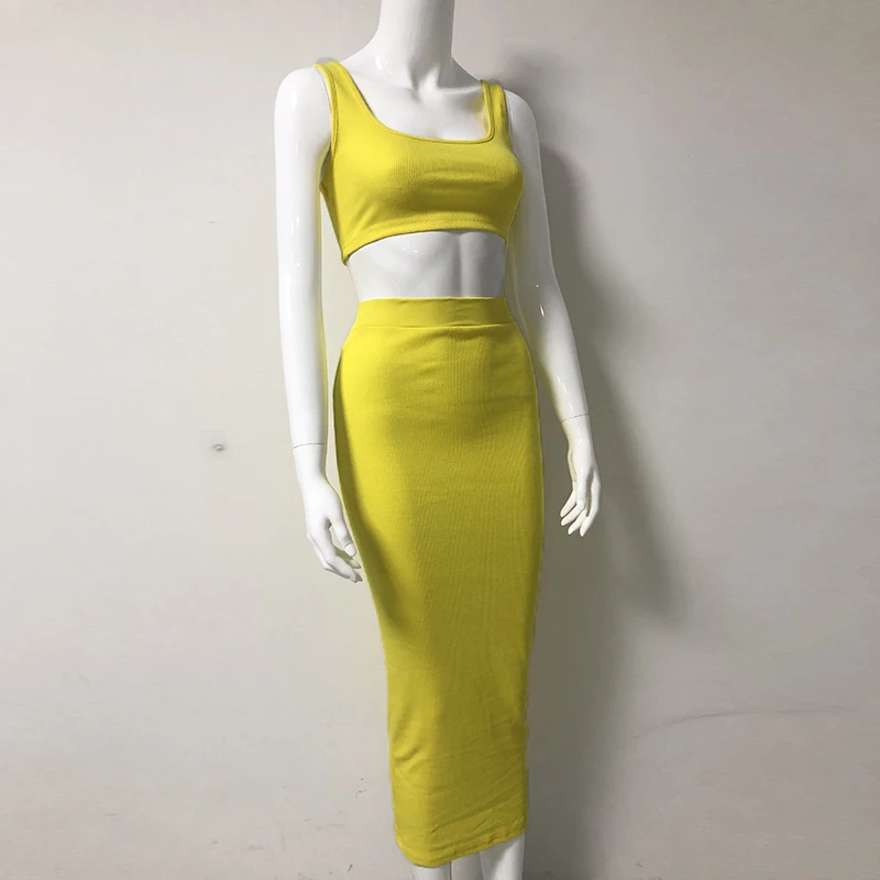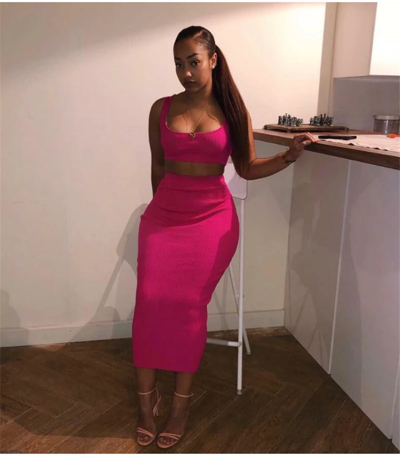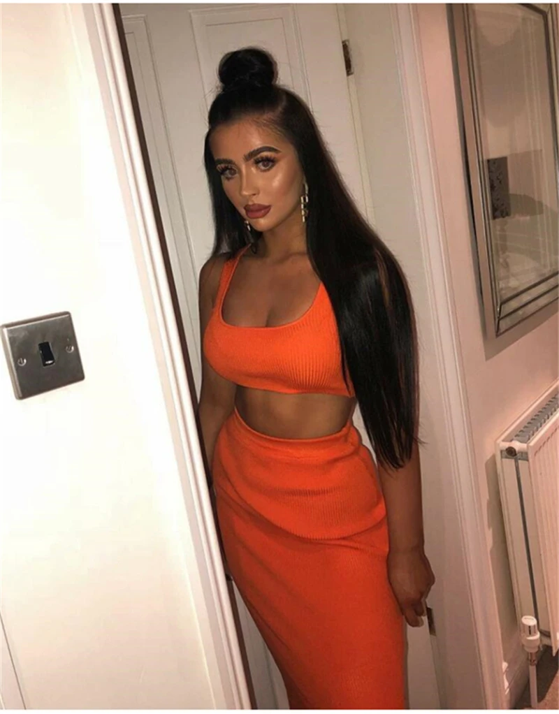 The 2 piece set is great for the summer. The skirt is a little thicker than the slinky material but it’s still really nice. The top is a Lil big but I love the set. The color is waaay more vibrant than these pictures FYI. Truly bright Orange