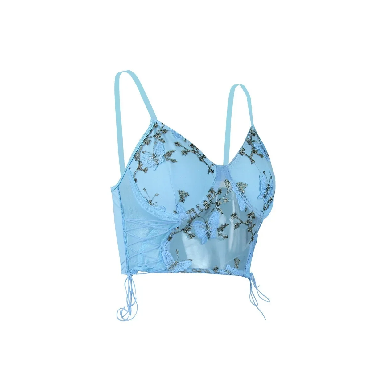 FREE SHIPPING Women Underwear Backless Embroidered Vest Top JKP7386