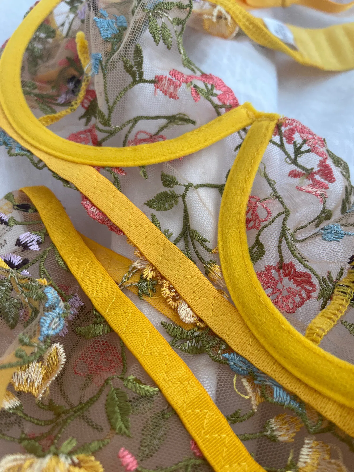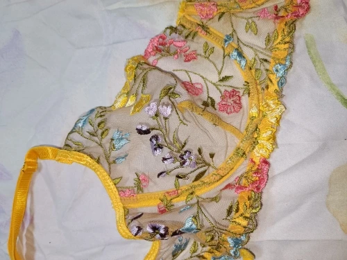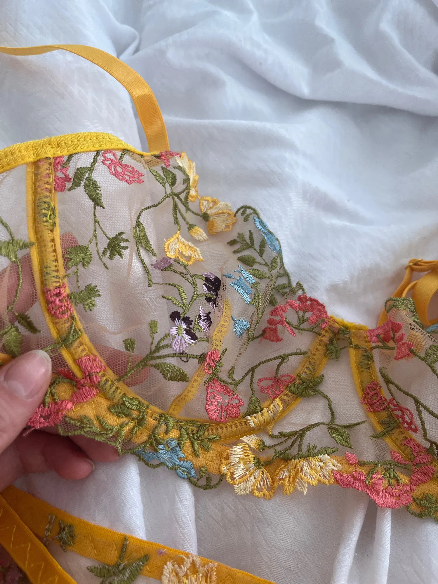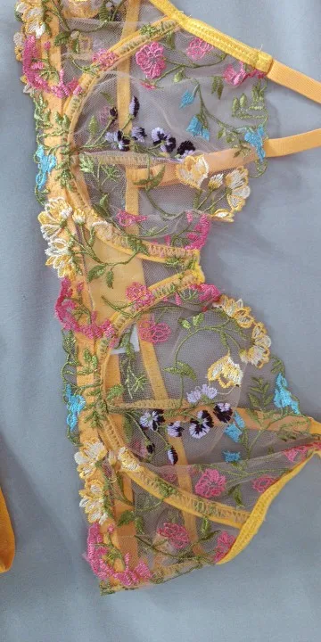Is beautiful as is in the picture, the size of the bra in size M is like for Cup B. I recommend ordering 1 size more