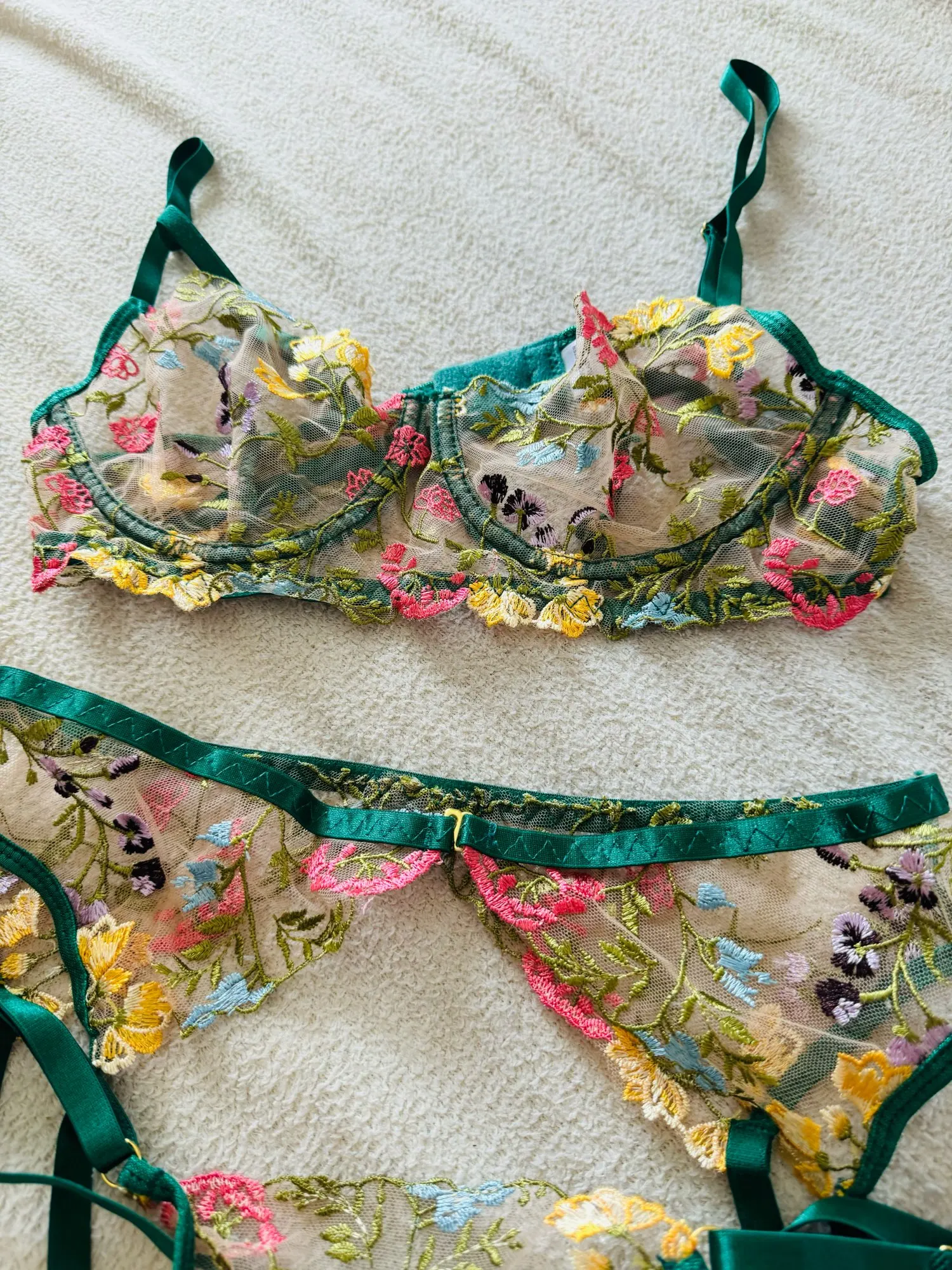 green lace lingerie looks decent for the price, slightly late in shipping but it arrived and remains accurate to the photo from the store! overall, no complaints!