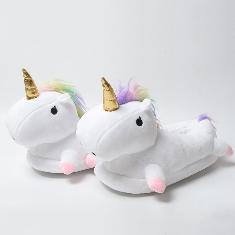 2018 Winter lovely Home Slippers Chausson Licorne White Shoes Women unicorn slippers animals pantuflas unicornio pantoufle femme.