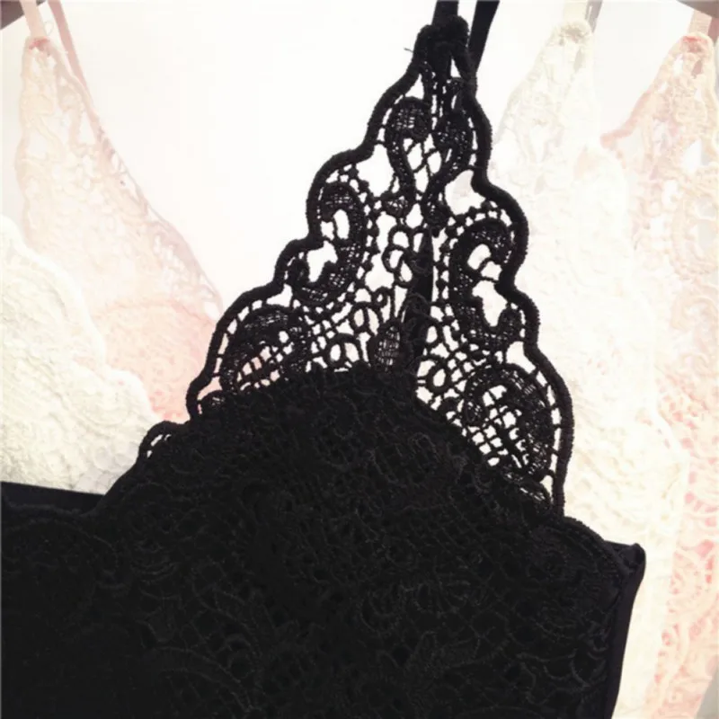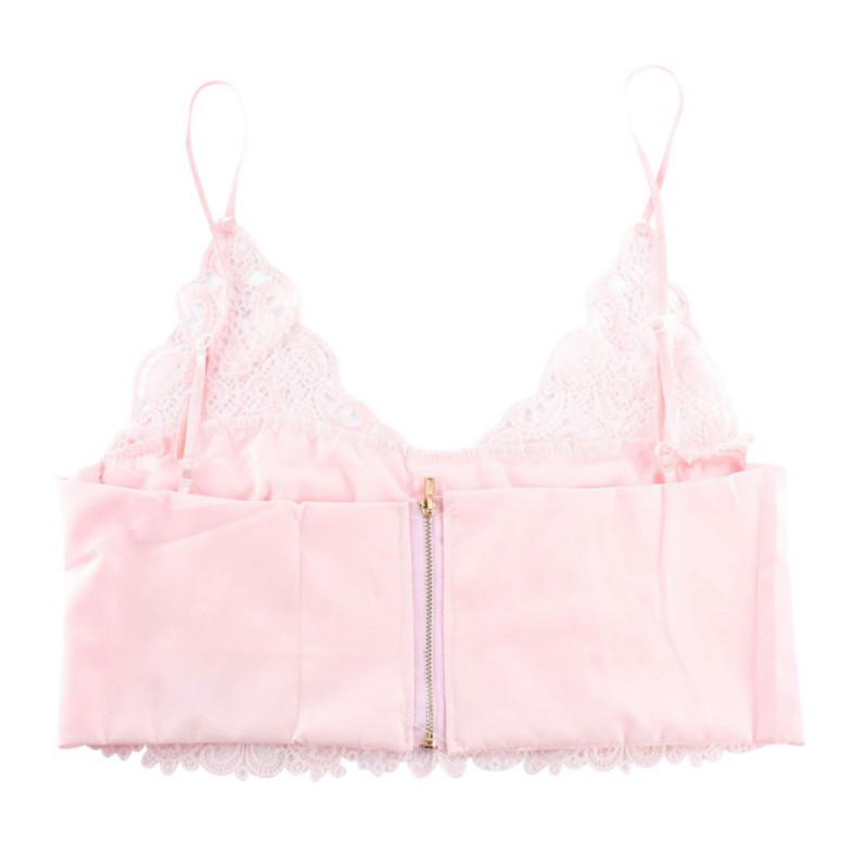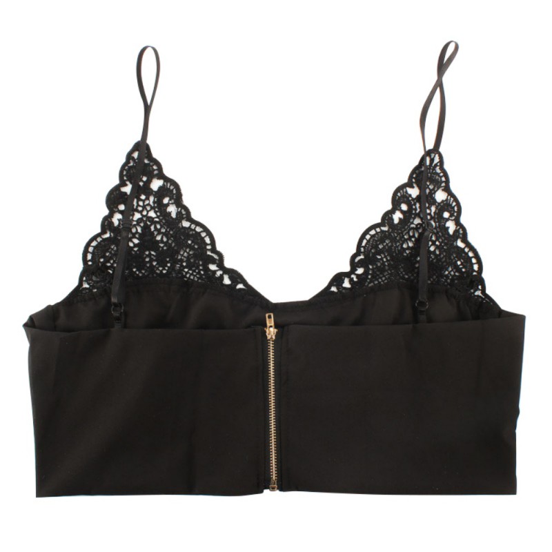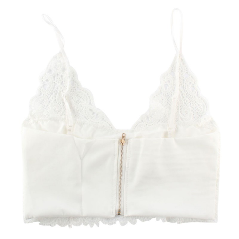Sexy New Style Casual Women V Neck Zip Back Lace Floral Non Padded Lace Bra Crop Top Boob tube