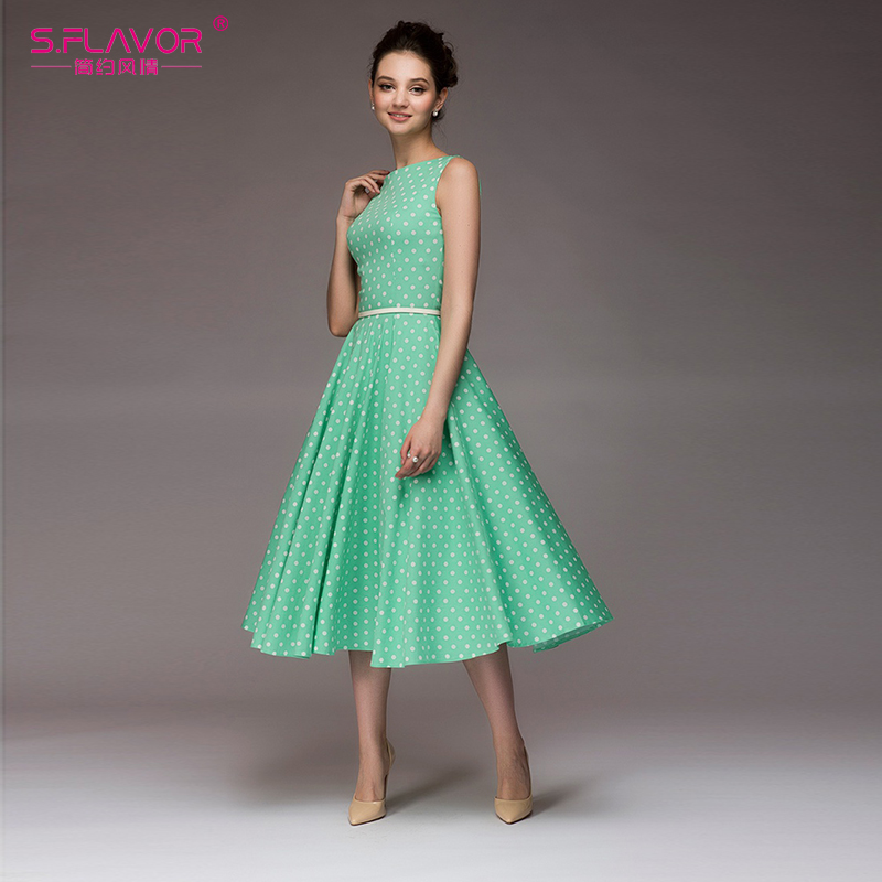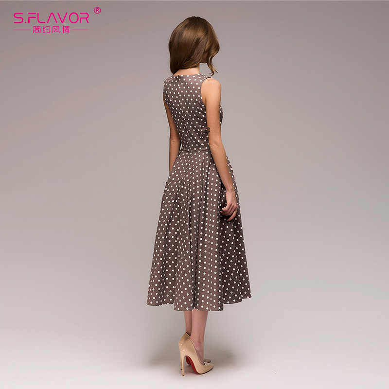 FREE SHIPPING Women Vintage Dress Sleeveless O-neck Dot Printing Dress JKP3399