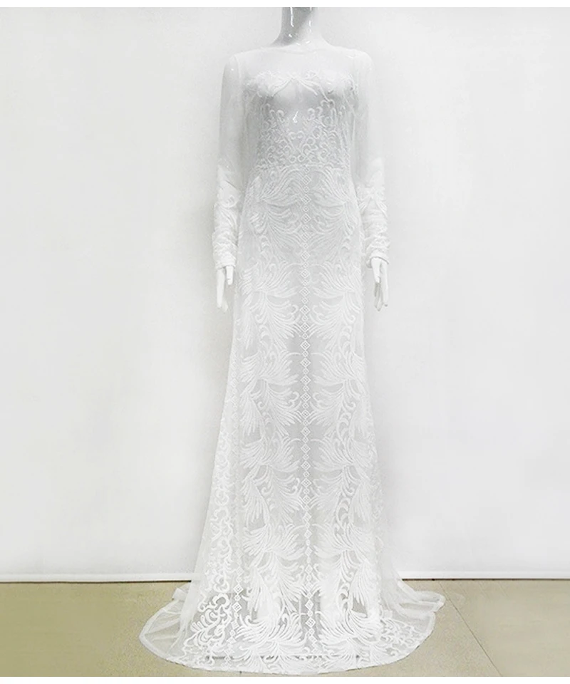 FREE SHIPPING Women Vintage Floral Party Long White Lace Dresses JKP1749