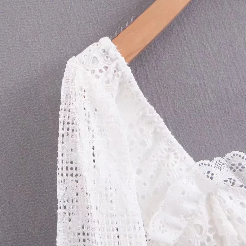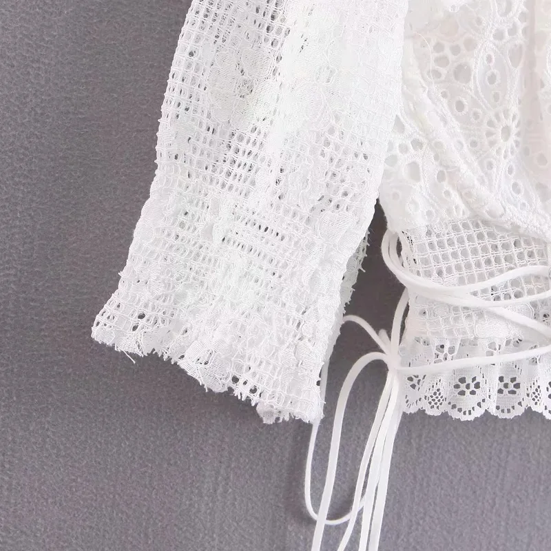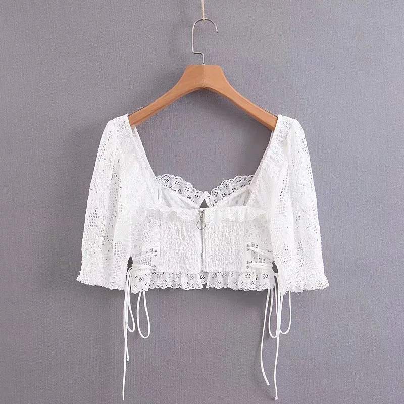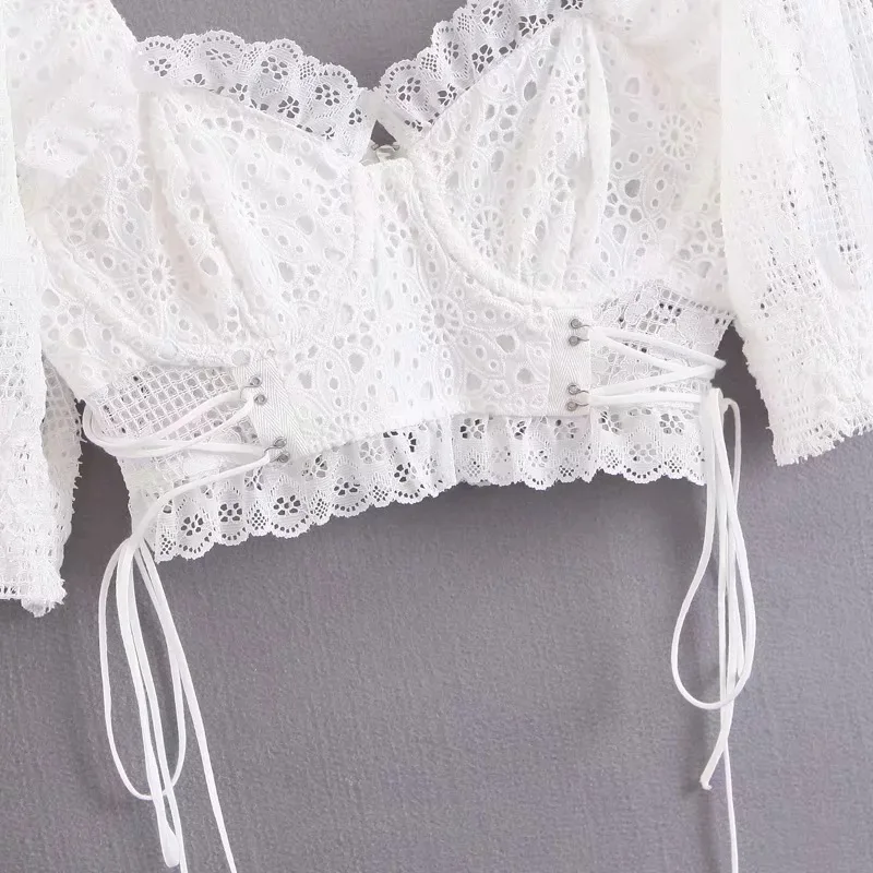 FREE SHIPPING Women Vintage Lace Up Puff Sleeve Tops JKP3213