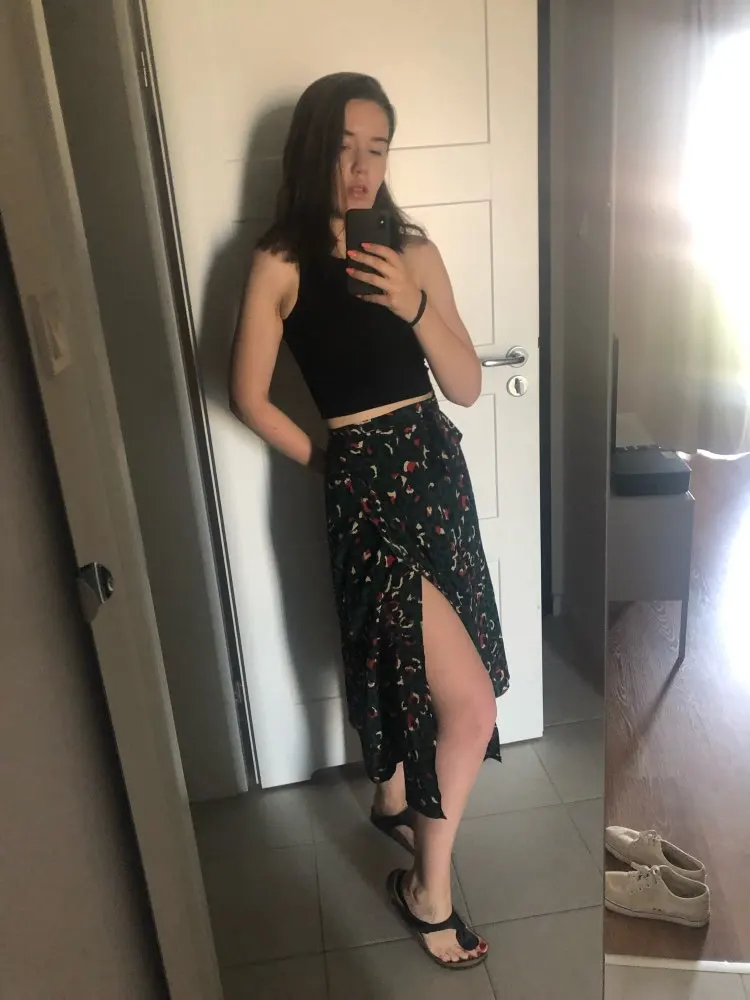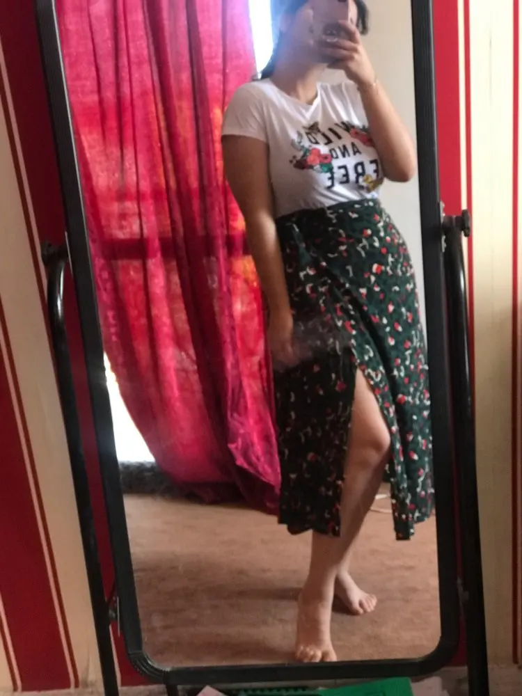 Very beautiful skirt, to accept awesome. All lines are well stitched, there are no stains and holes. At 95 hips, waist 63 took s.