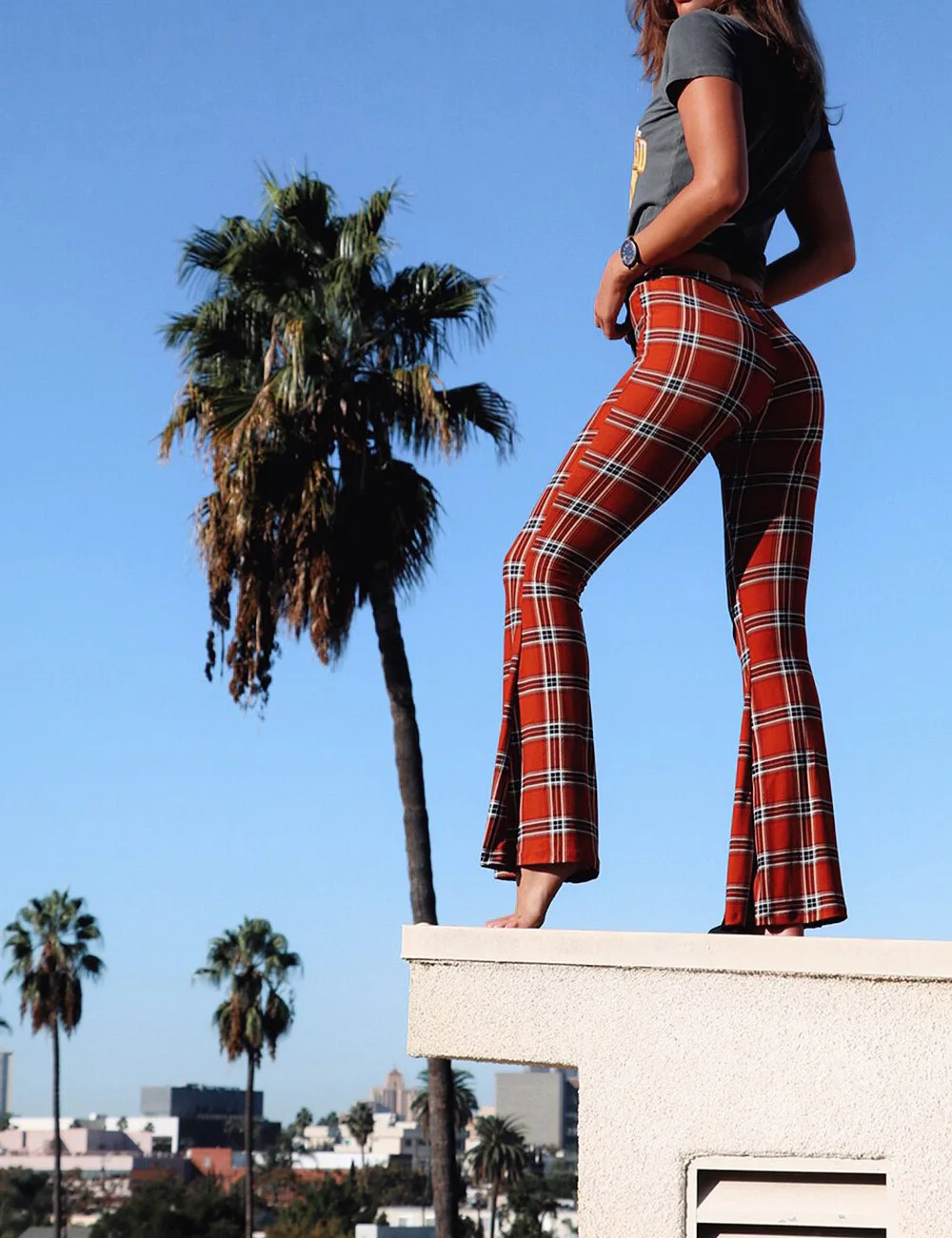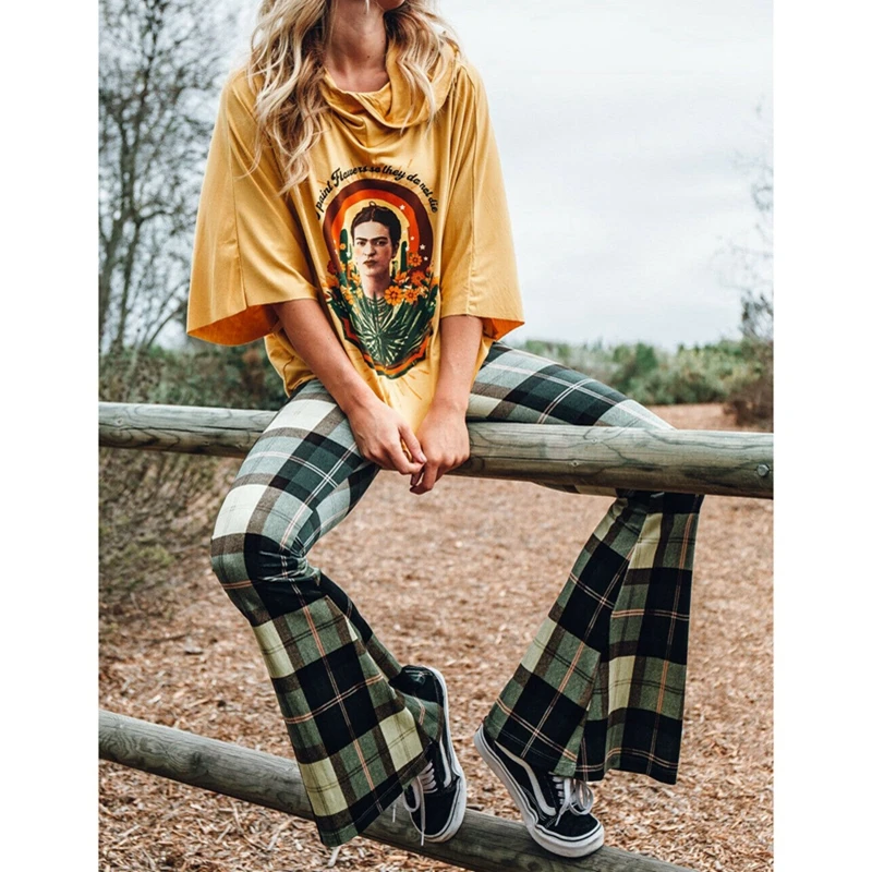 FREE SHIPPING Women Vintage Plaid High Waist Flare Pants JKP3065