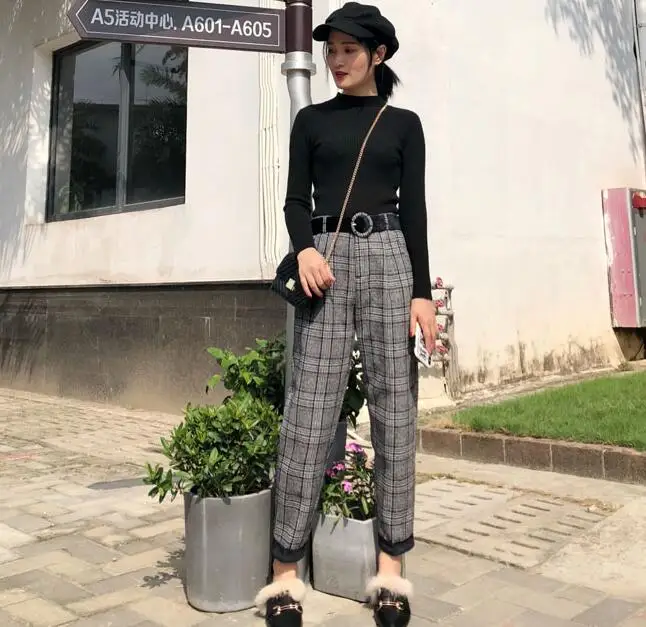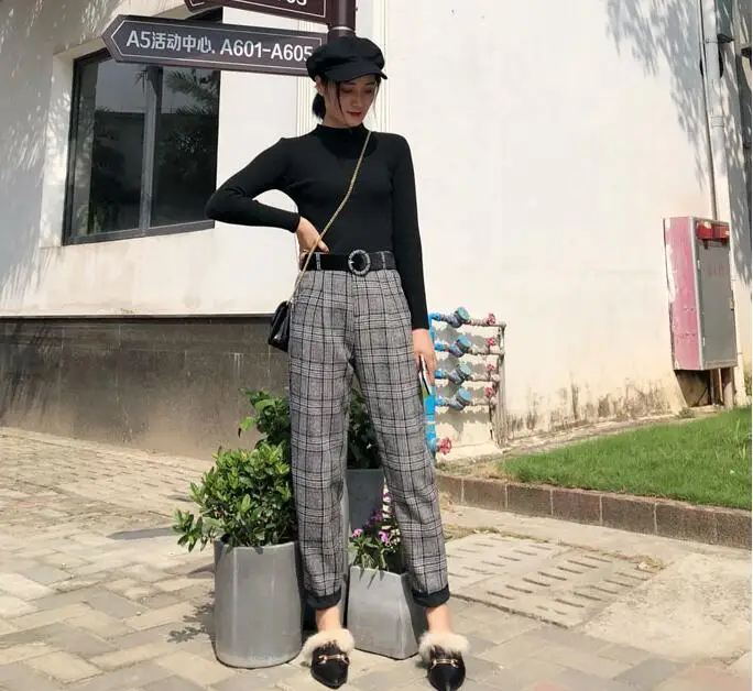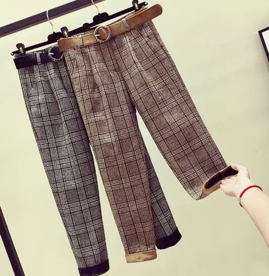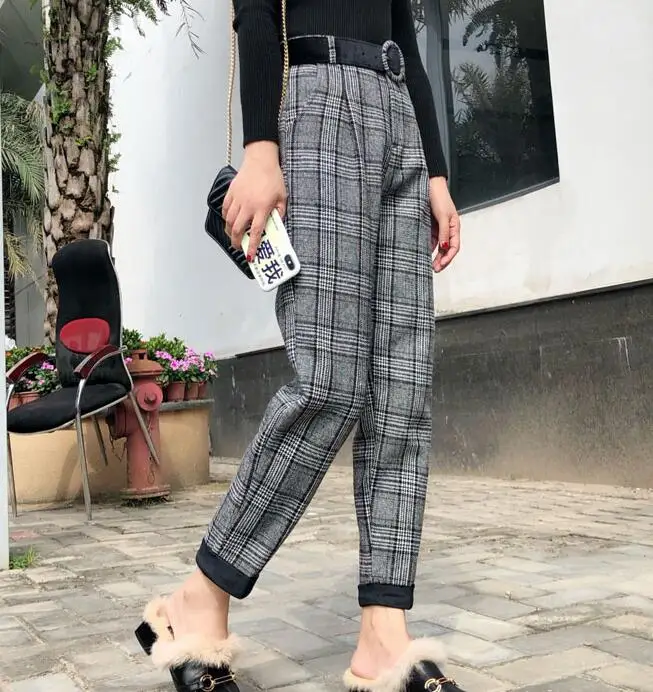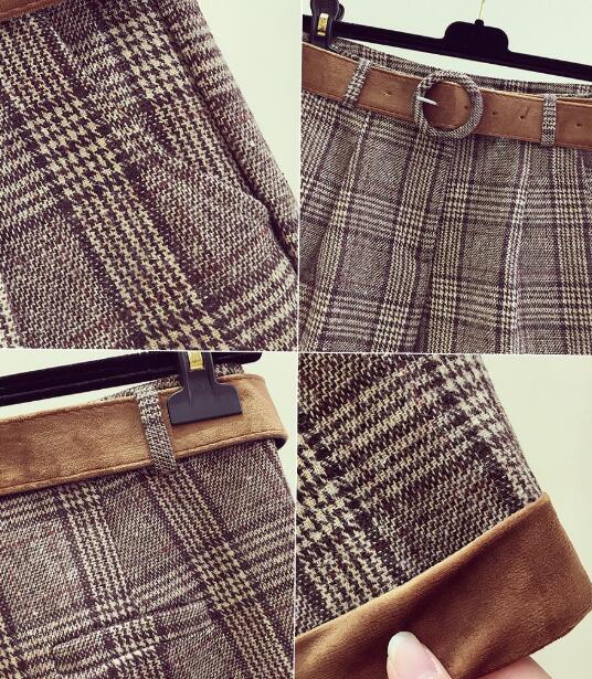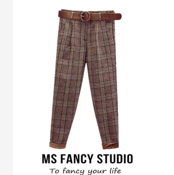 FREE SHIPPING Women Vintage Plaid Pant with Belt JKP1345