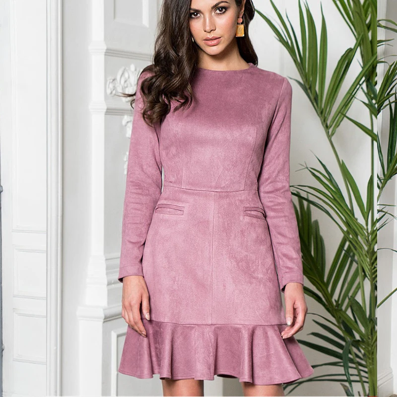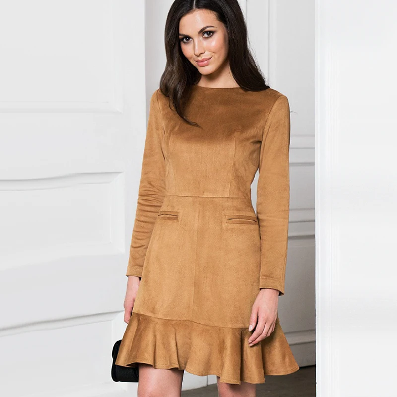 FREE SHIPPING Women Vintage Ruffled Su Dress Suede JKP3046