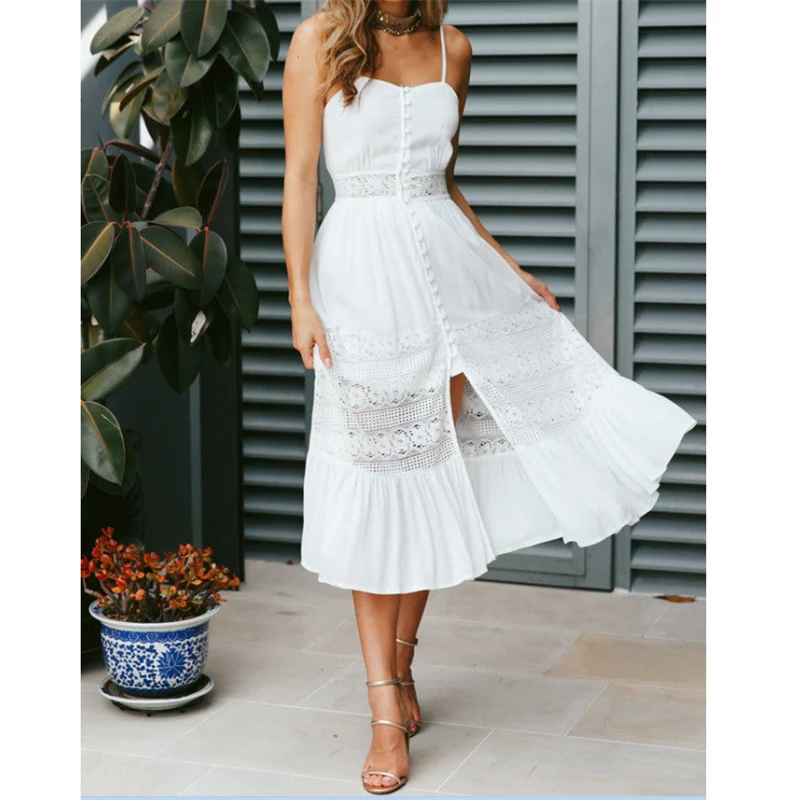 FREE SHIPPING Women White Lace Split Dress JKP3255