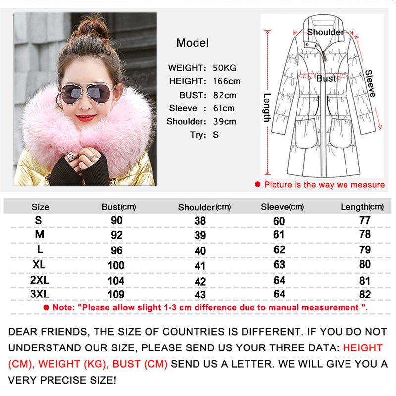 The parcel is received quickly, and the fur collar is beautiful. Just like the description, the jacket will give off a bright color. Silver white is very bright. The jacket is very light but very warm. I weigh 49kg. 160cm store suggested that I choose M, very correct, the seller is very patient and very good service. The jacket is suitable for winter. I recommend