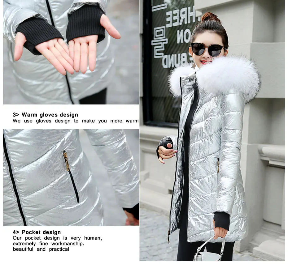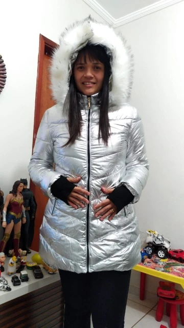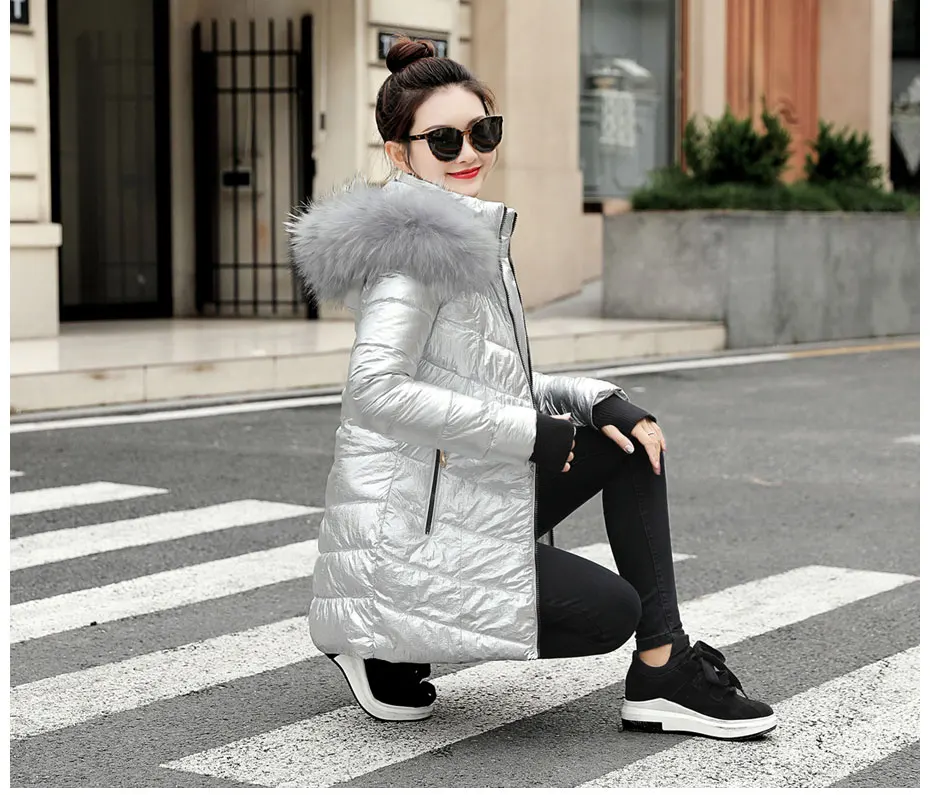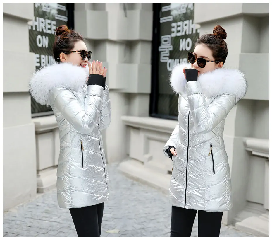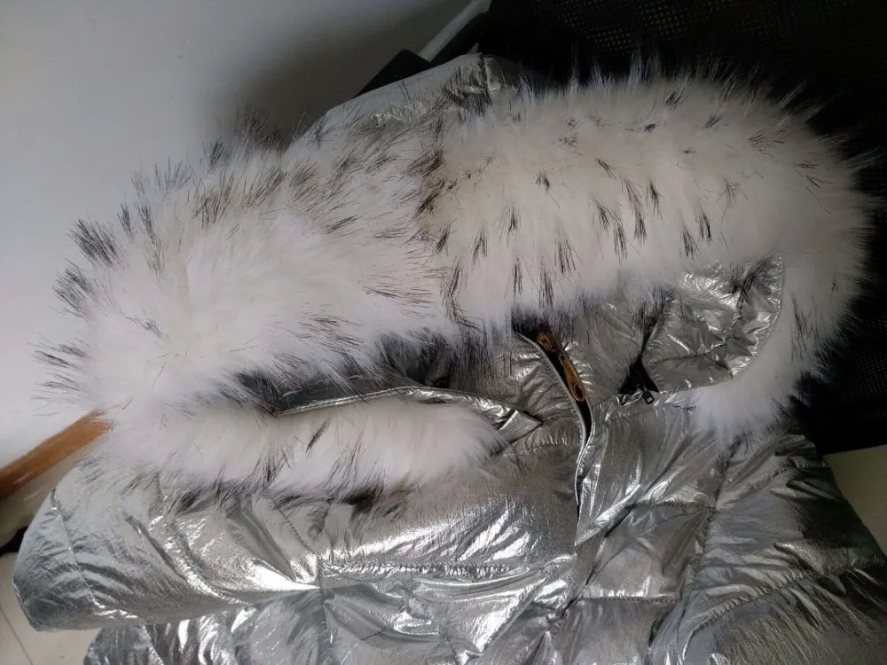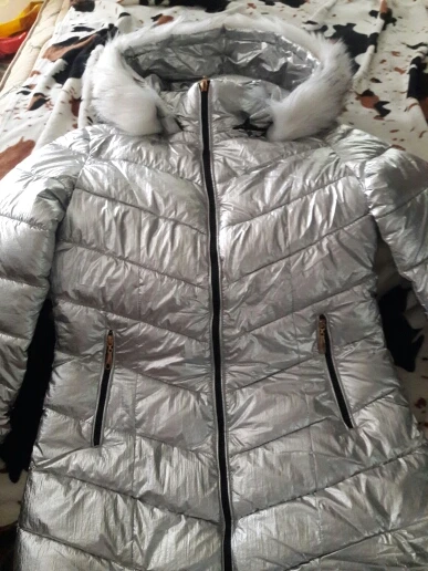 The parcel is received quickly, and the fur collar is beautiful. Just like the description, the jacket will give off a bright color. Silver white is very bright. The jacket is very light but very warm. I weigh 49kg. 160cm store suggested that I choose M, very correct, the seller is very patient and very good service. The jacket is suitable for winter. I recommend