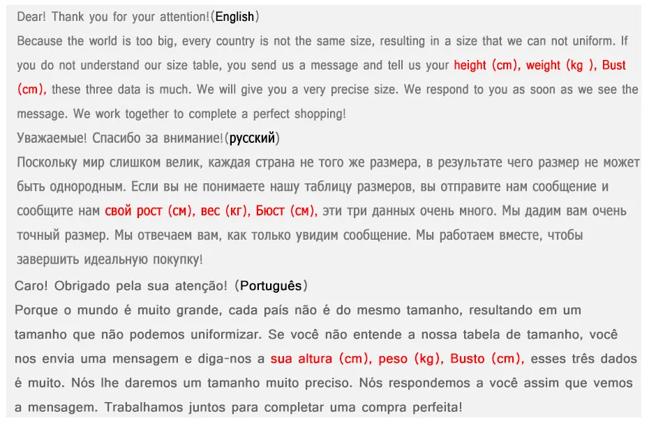 THE coat is beautiful! Perfect packaging. Ordered the XXXL afraid tight actually was a little off the abdomen, but is perfect because Use in snow and put more clothing underneath. 1,75 cm height and 79 kg, super comfortable to around. Super attentive and delivery pro Brasil in 15 days. Buy more 2 coats so good that is.