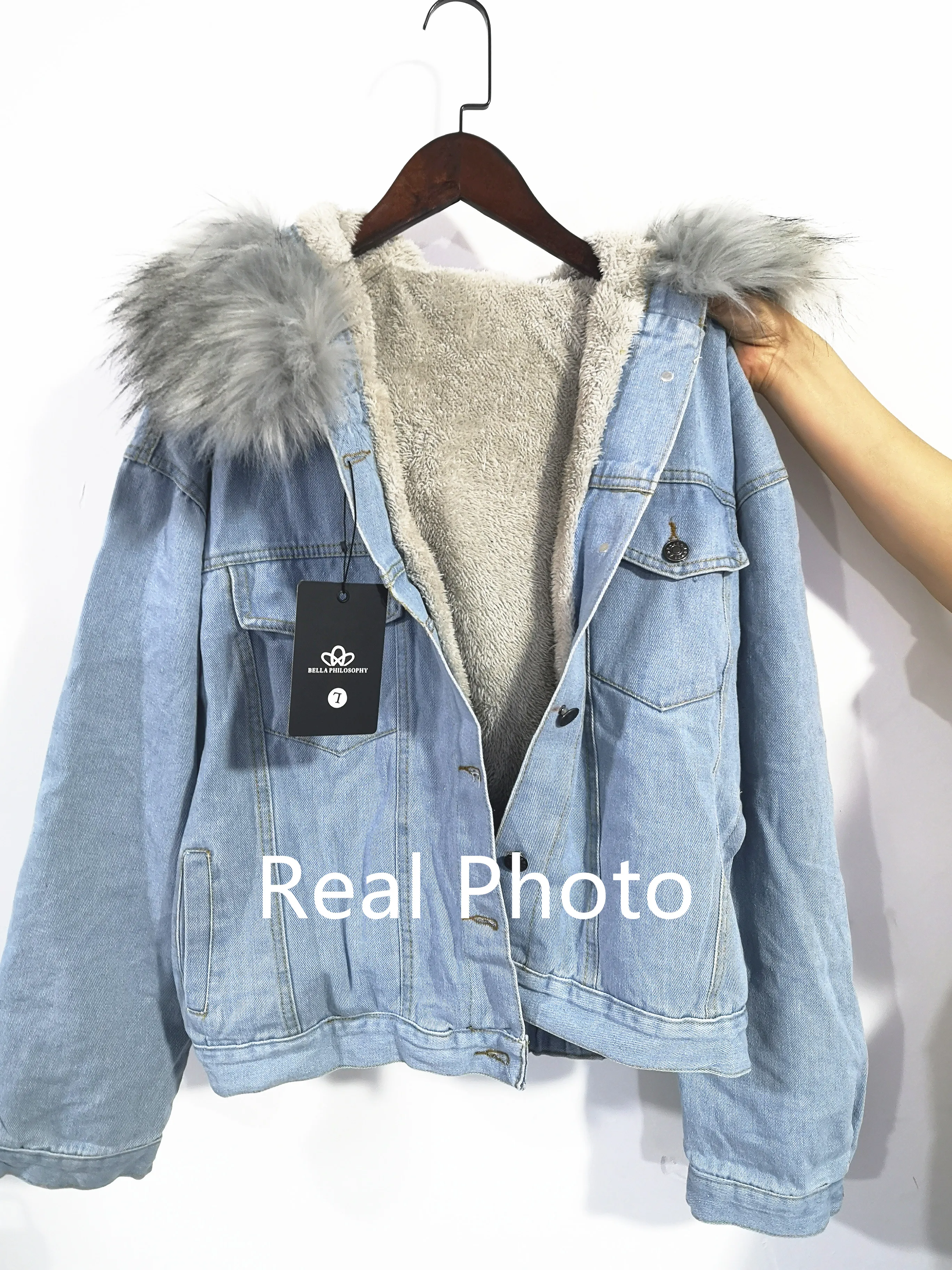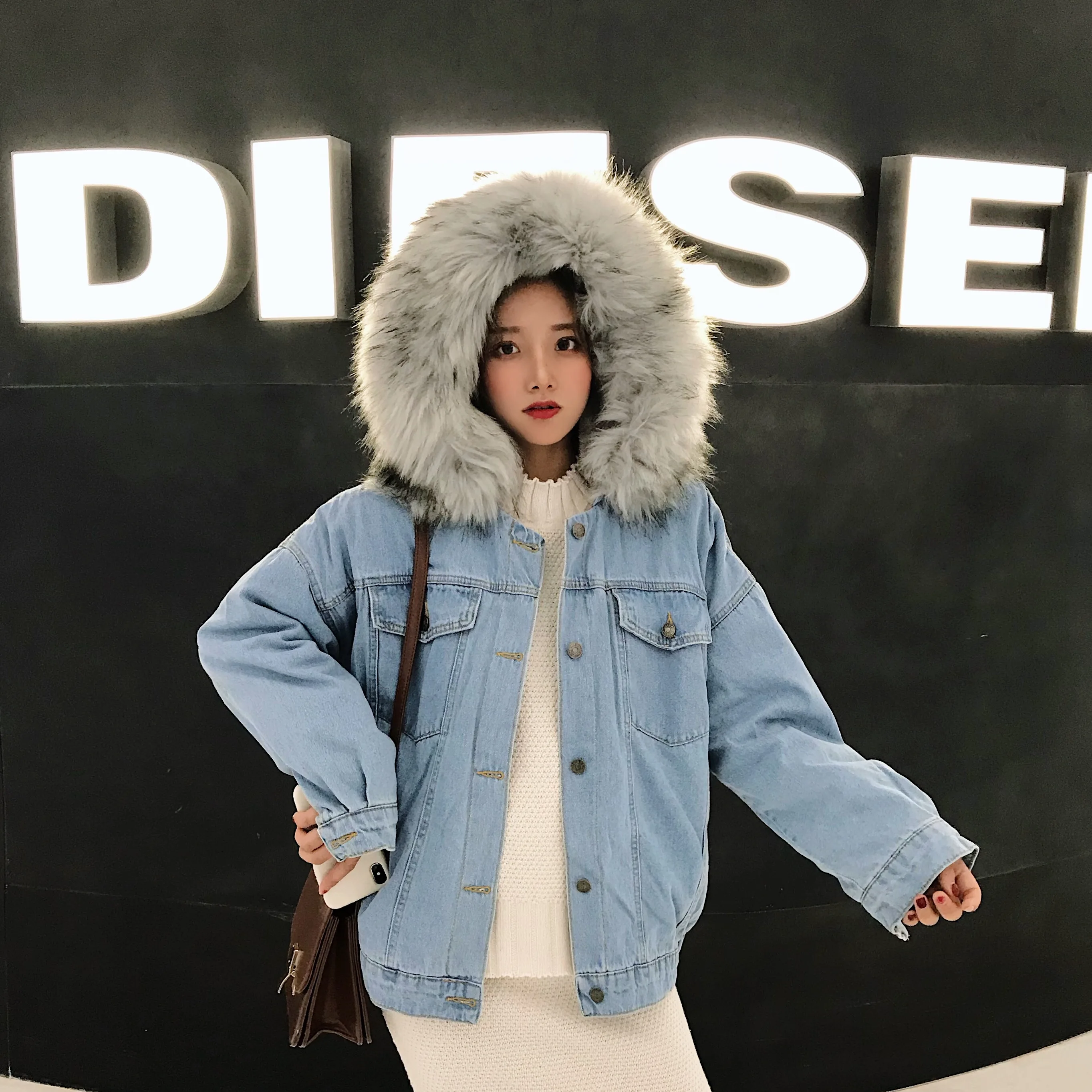 FREE SHIPPING Women Winter Outwear Fur Denim Coat Hooded JKP5970