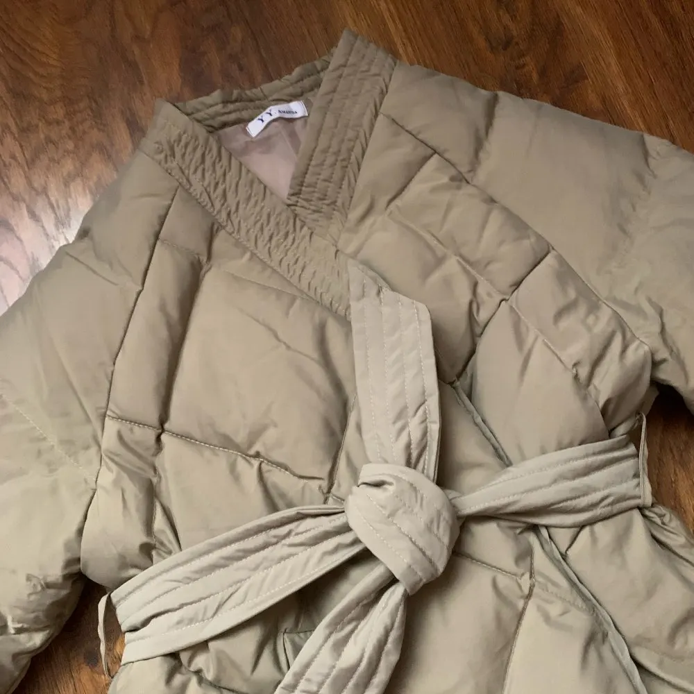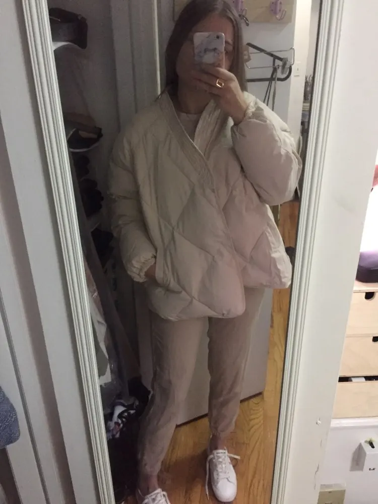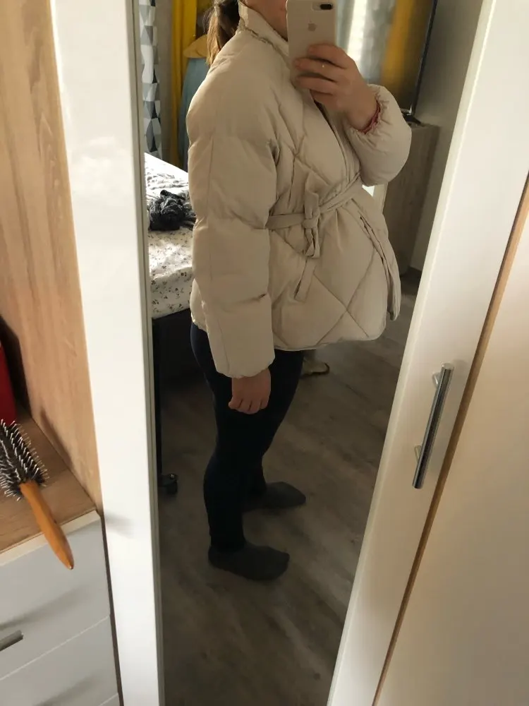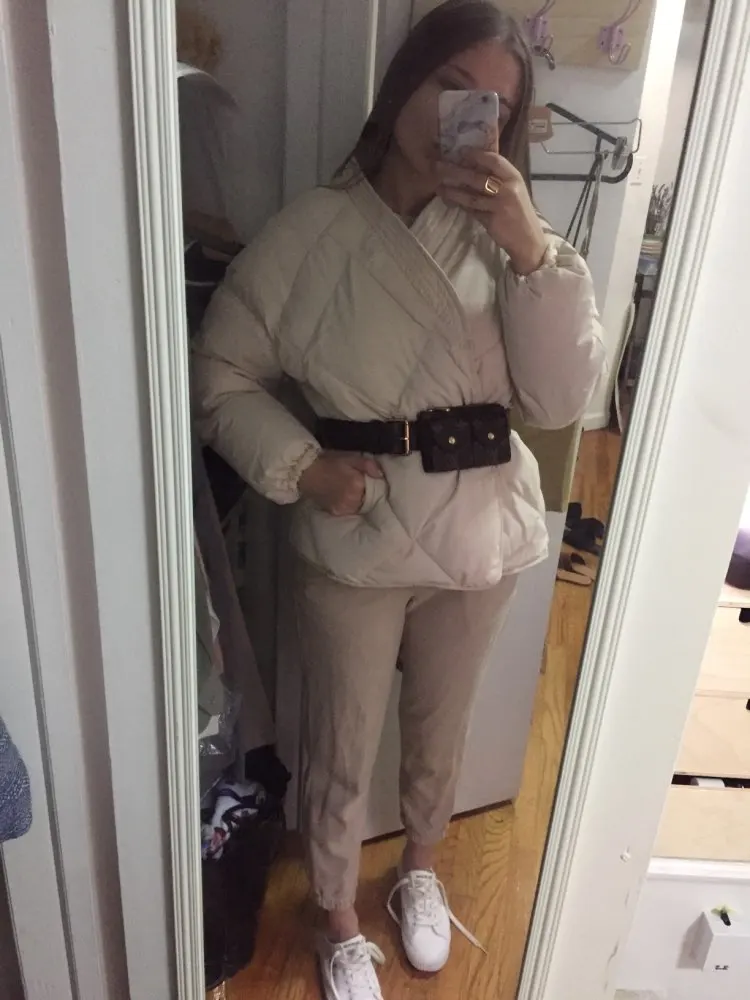 Love this jacket!! Beautifully sewn, no smell, came packed in a ziploc. There’s so many ways to wear it, I’m leaning towards no belt at all since I’m more into relaxed outfits, for someone size XS it’s very roomy with space for chunky sweaters etc. Came to NY in 15 days