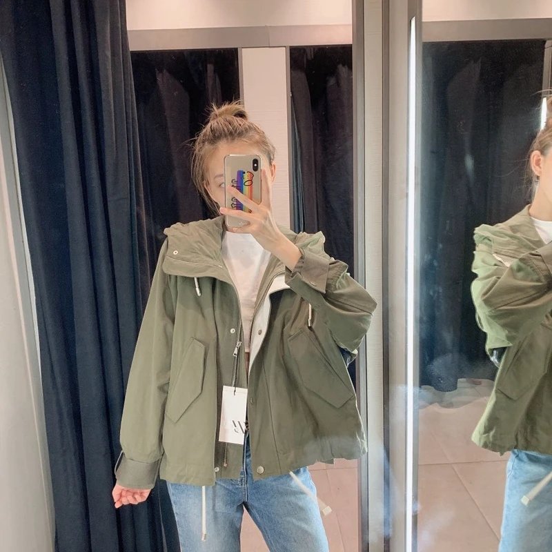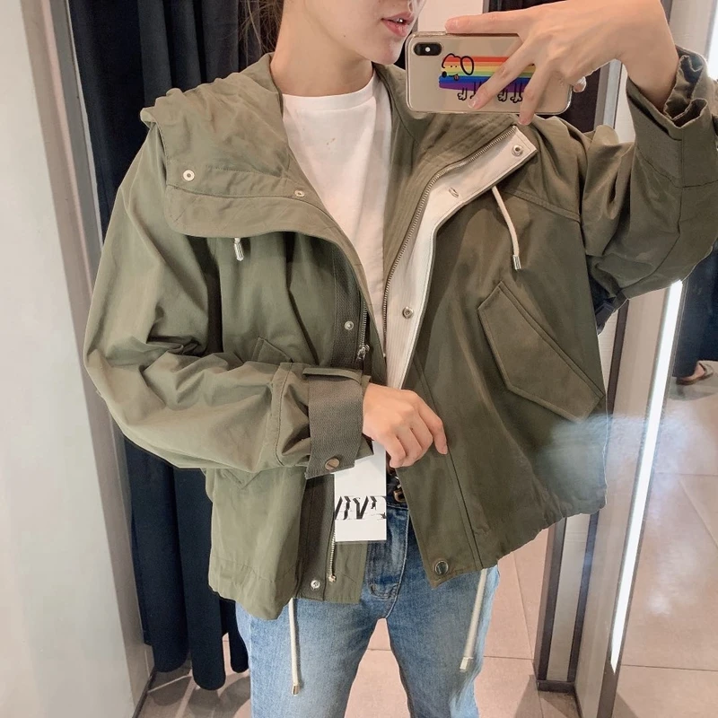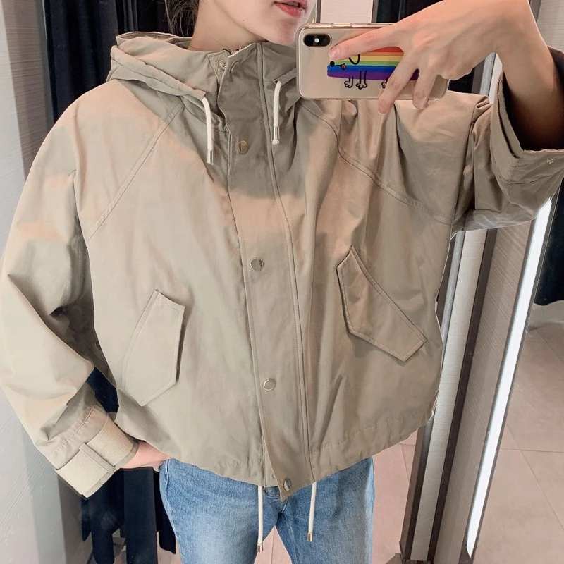 FREE SHIPPING Women’s Autumn Loose Solid Simple Loose Style Jacket Short Windbreaker JKP2091