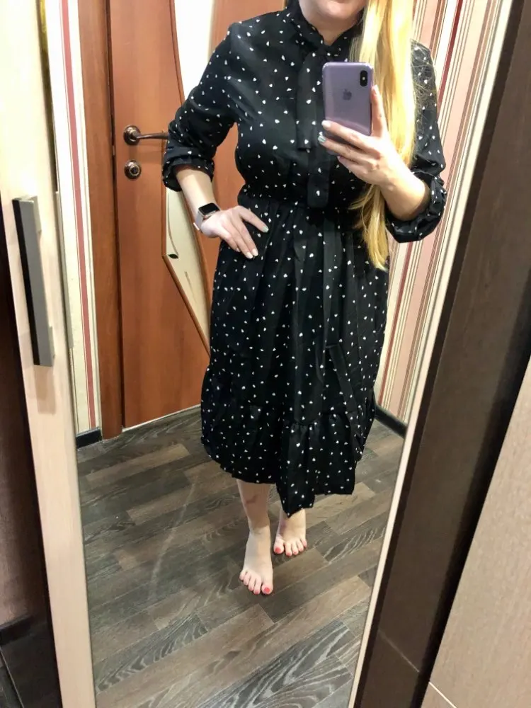 Comfortable and interesting in the design of the dress, it is very comfortable, i really liked it!)) i ordered color 22 in the size l. my parameters: 90-89-94 cm and height 162 cm. The dress sits well, slightly loose. In the chest does not press, the tummy too)) the sleeves raised specially, a little incomprehensible to me their length. The length of the dress itself to the middle of the knee. The dress is comfortable, not hot, does not shine through. Washing survived perfectly, the color did not change. Shipping 9 days, tracking number tracked. More information and photos in my instagram-yusupchik_k