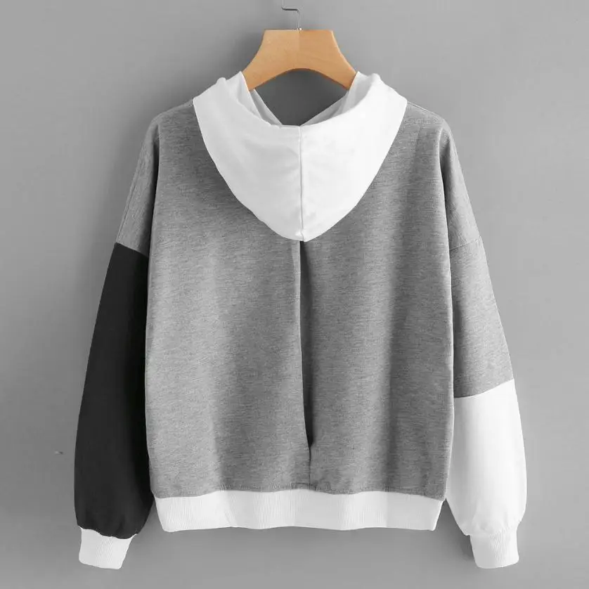 FREE SHIPPING Womens Hoodie Sweatshirt Korean Autumn Ladies Causal Patchwork Letter Long Sleeve Hooded Pullover Tops sudadera mujer New JKP2241