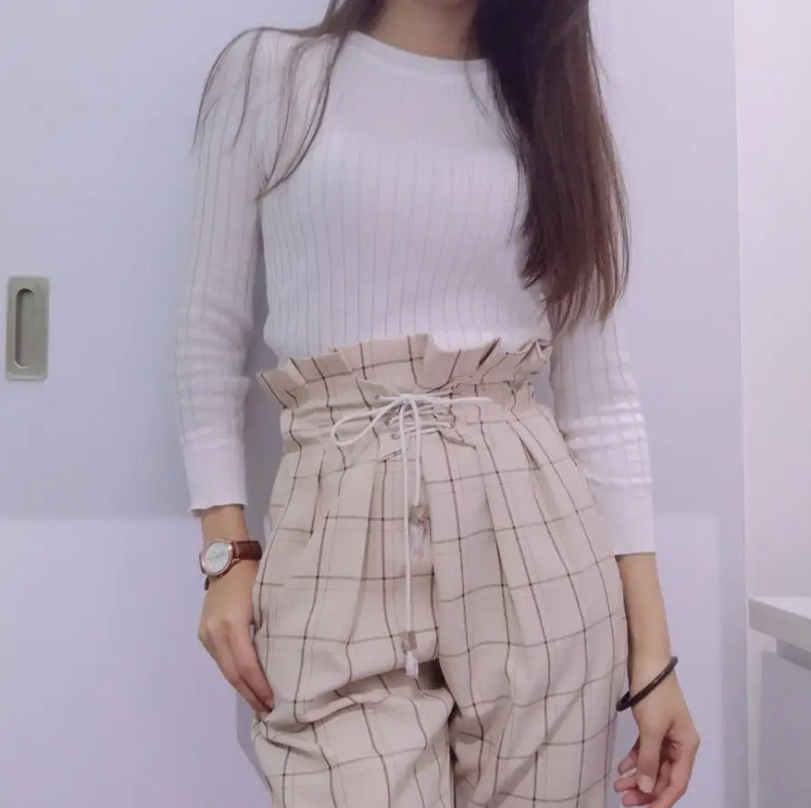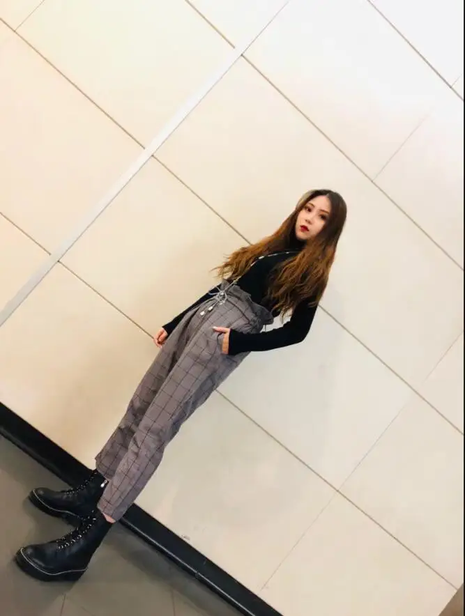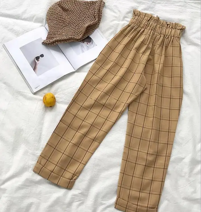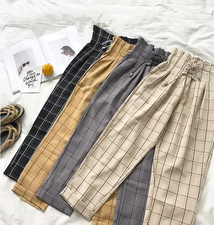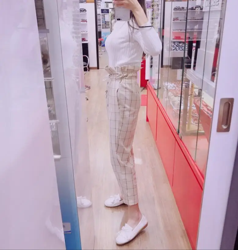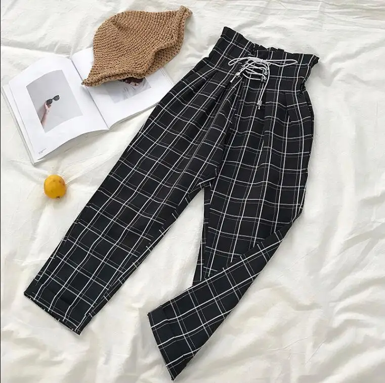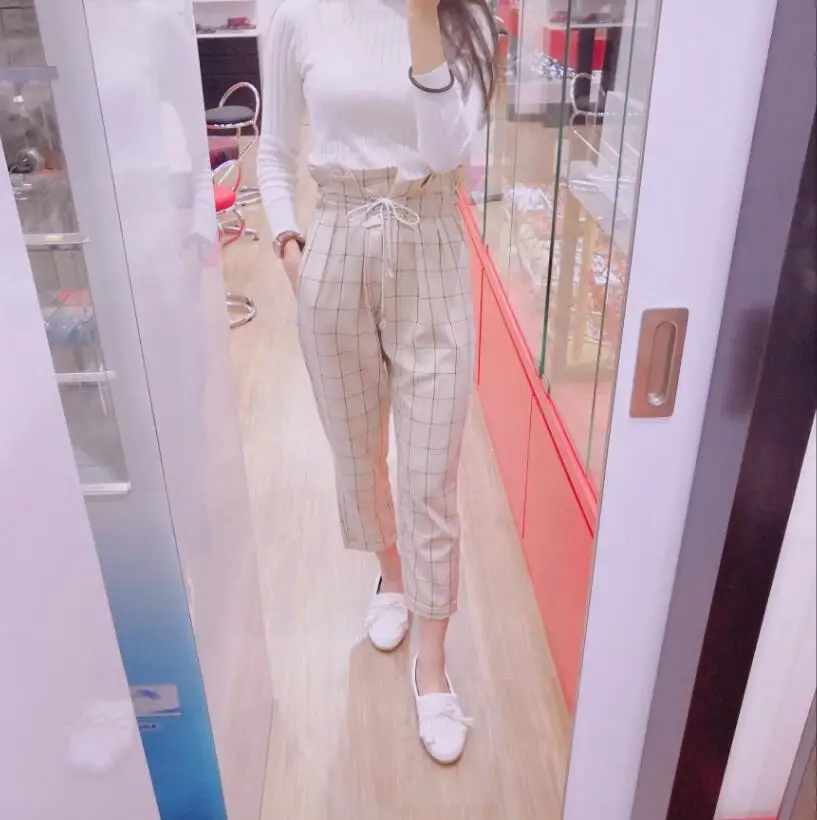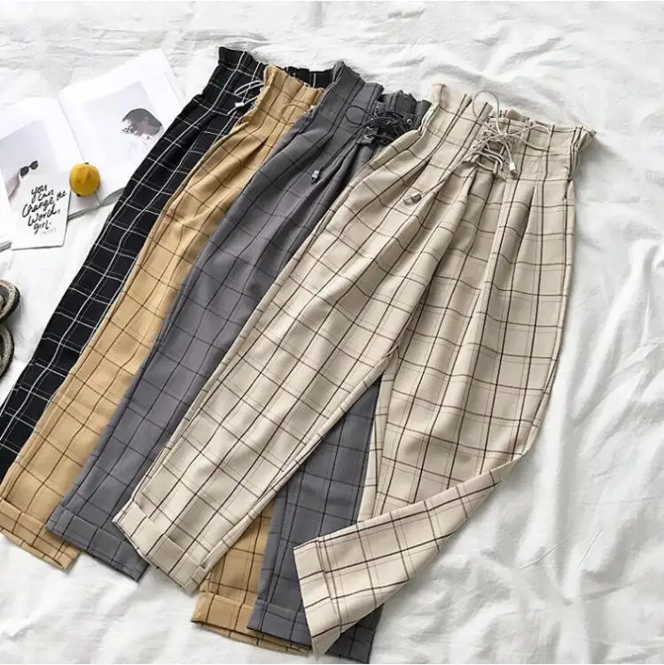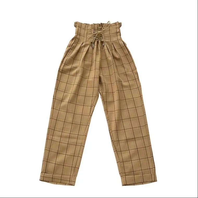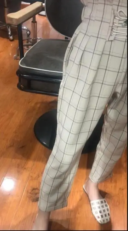 FREE SHIPPING Women’s Plaid Loose Harem Nine pants JKP1811