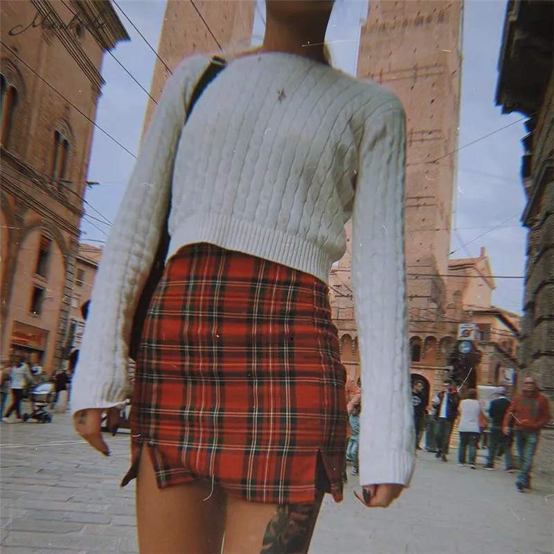 FREE SHIPPING Womens Plaid Slim High Waist Zipper Mini Skirt JKP3579