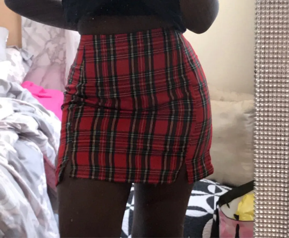 Really cute skirt. Love how it feels. Only problem is that when I sit my legs stretch it a bit and I’m scared of ripping. ( last picture shows how the material barely stretches) I can walk fine in it though. I would buy more, maybe a bigger size