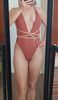 I loved how the swimsuit looked online, when I tried it on lwas excited that I liked how it looked on me! the timing wasa little confusing but overall you can pretty much tiredhowever you need to my chest is a little small so l may haveto tape besides town so l don't have a nip slip. The bottomis comfy sexy and I feel confident in