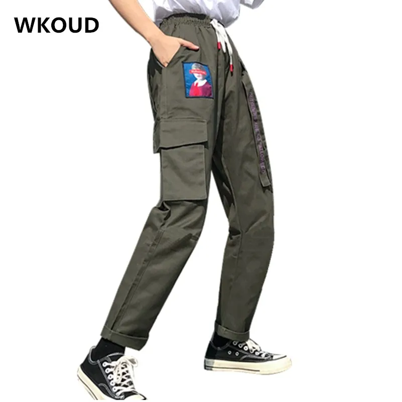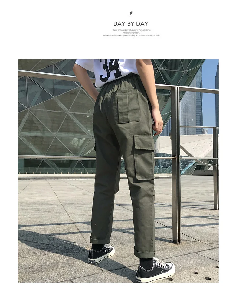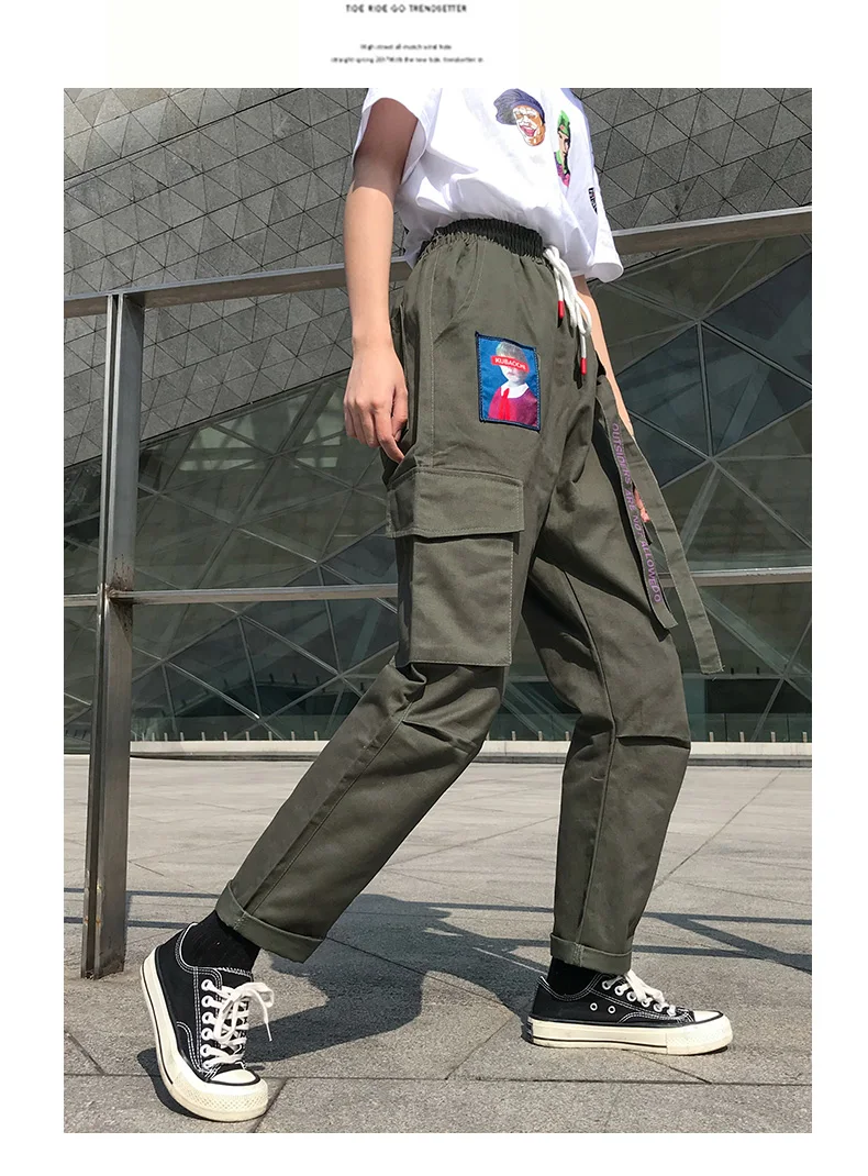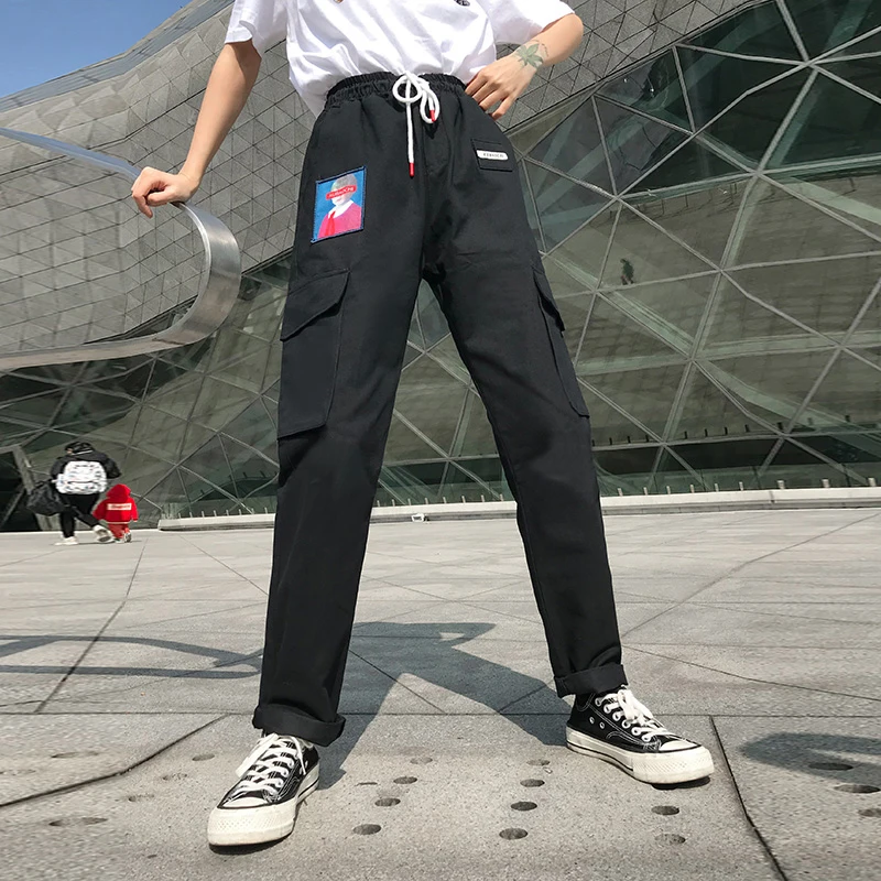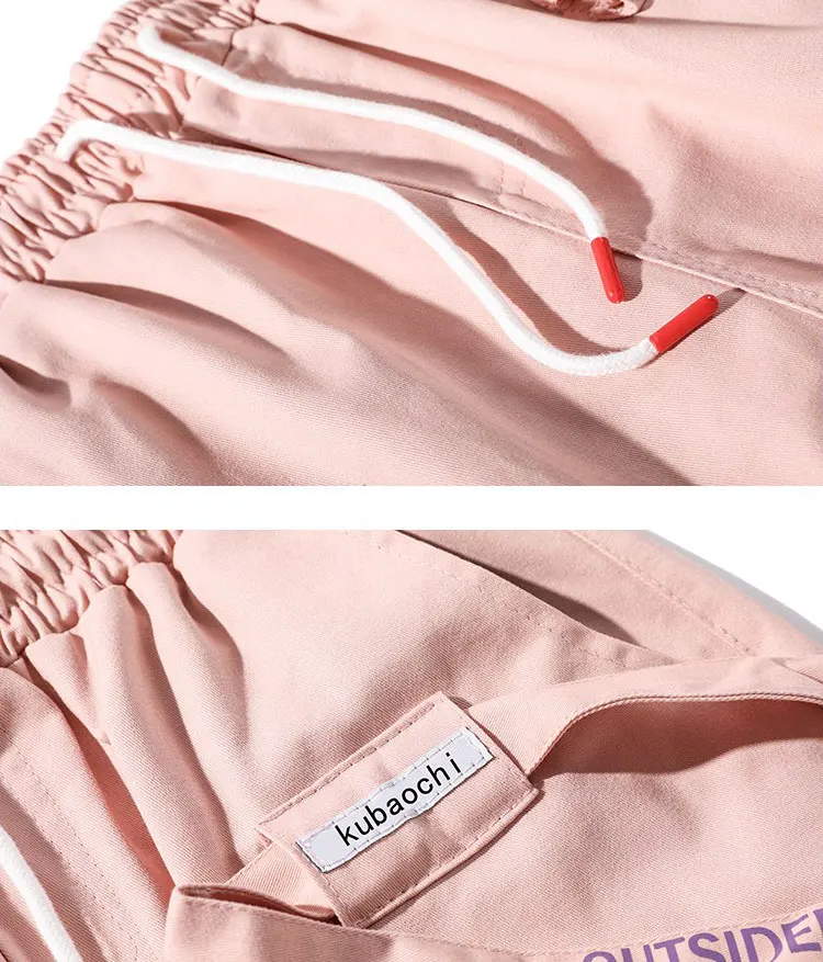 FREE SHIPPING Womens Street Outfit Cargo Pants Drawstring Waist Letters Printed Sweatpants Pink Big Pockets JKP1480