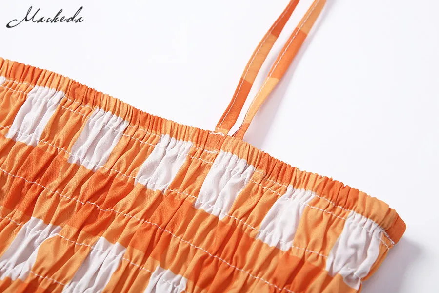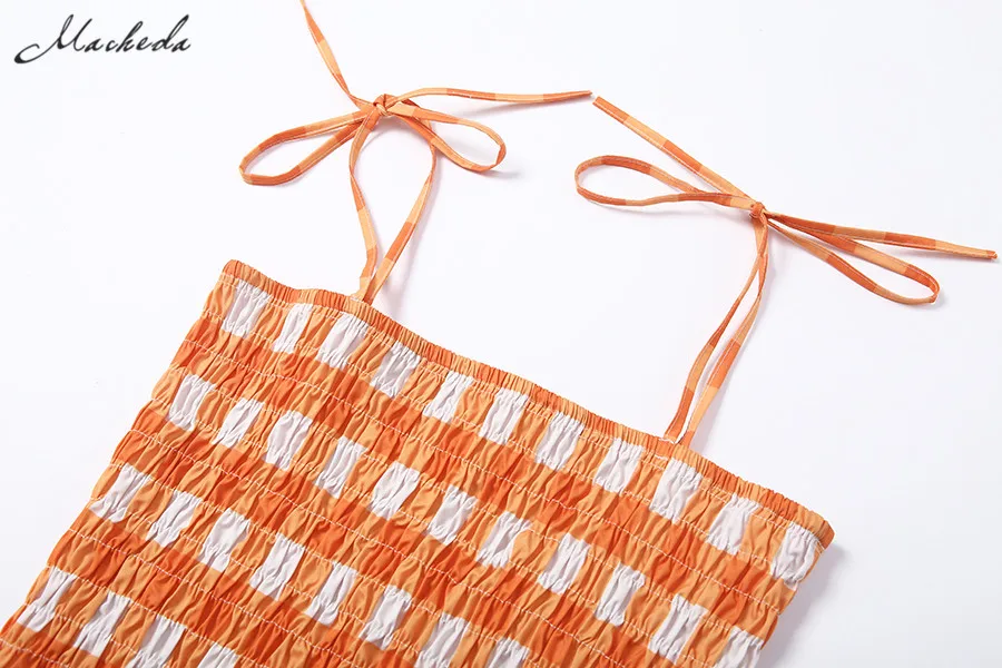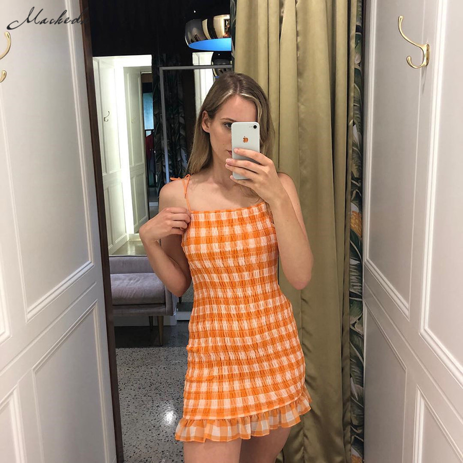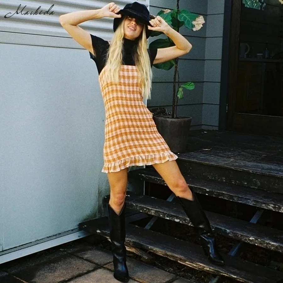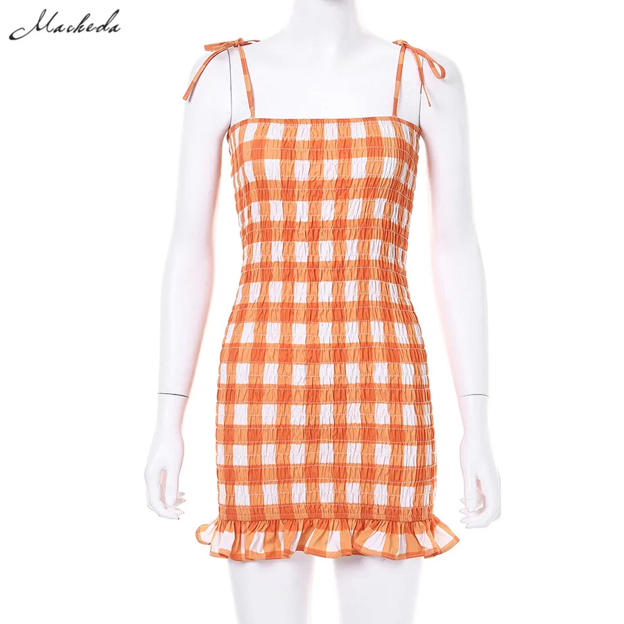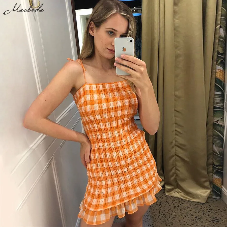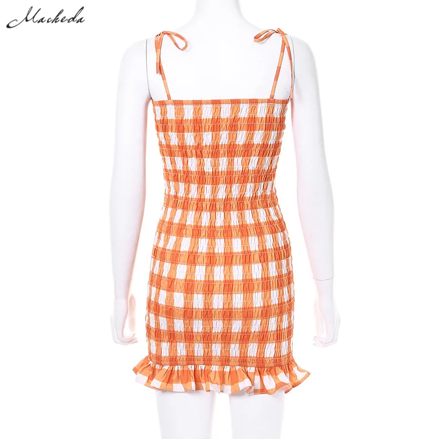 FREE SHIPPING Womens Summer Ruffle Adjustable Spaghetti Strap Plaid Dress JKP3618