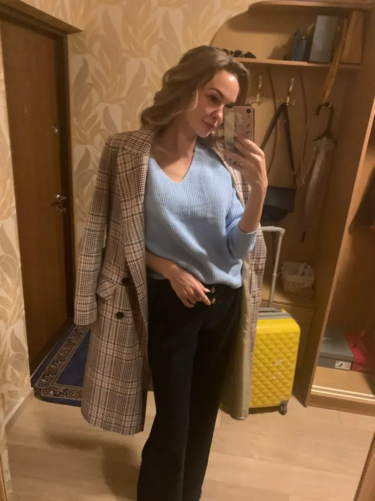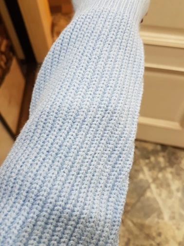 Beautiful color. Soft. On height 170 and size 40-42 rus. Sat down as in the photo, and the sleeve is long