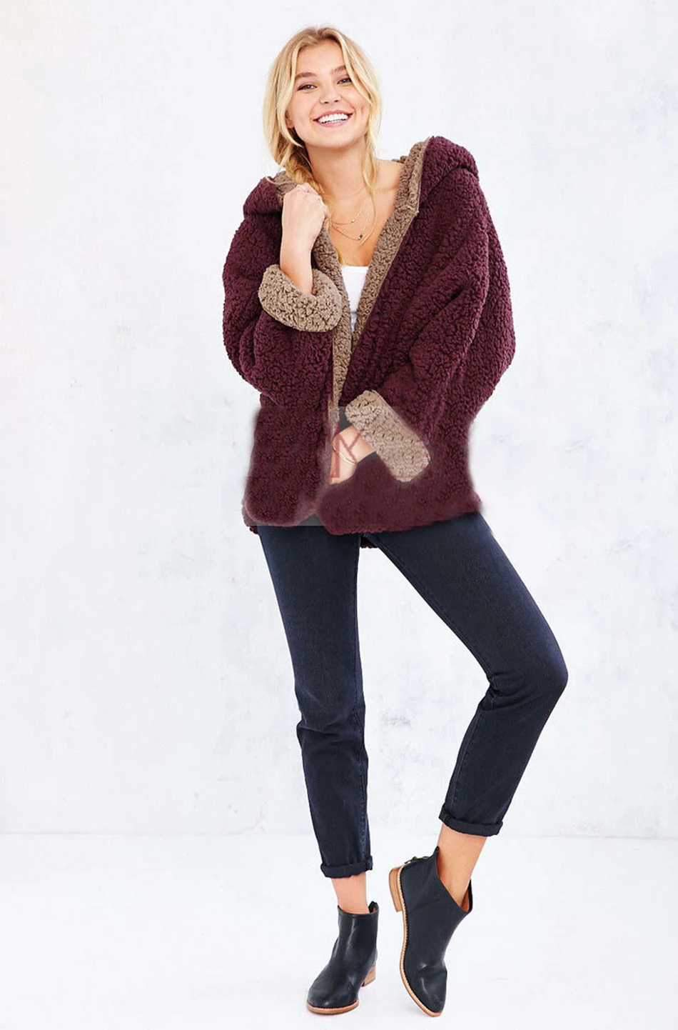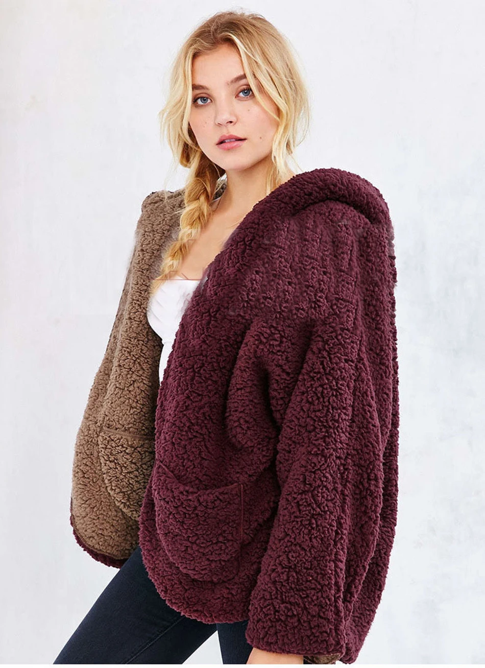 FREE SHIPPING Women’s Teddy Coat Hooded Two Side Jacket JKP3037