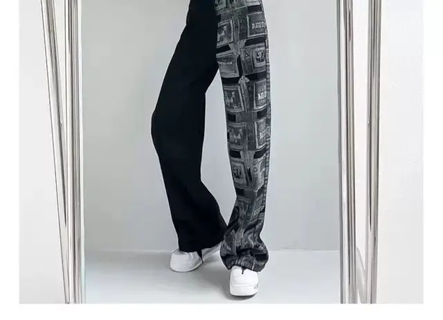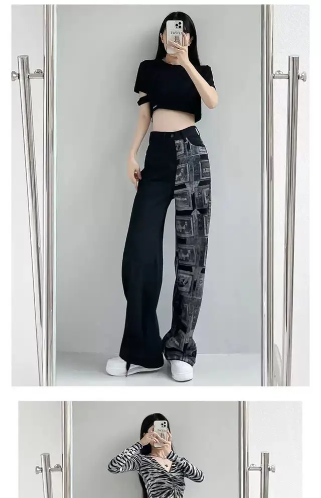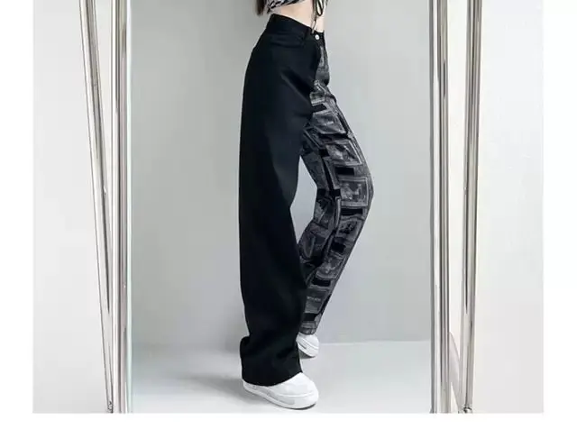 FREE SHIPPING Women’s Wide Leg Jeans Letter Patchwork JKP6079