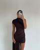 FREE SHIPPING Y2K Ruched Turtleneck Mini Dress Sleeveless Draped Club Outfit JKP7310
