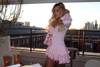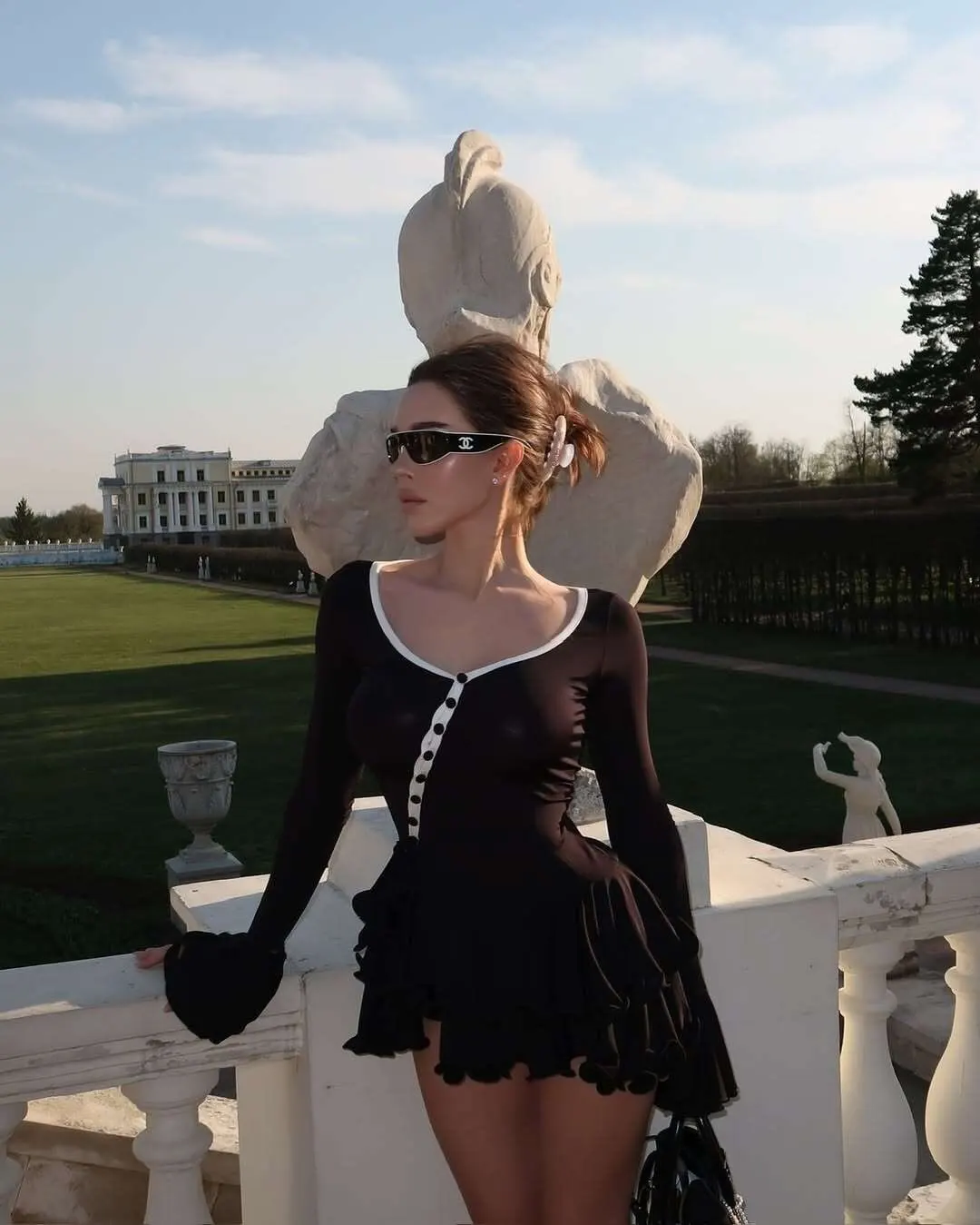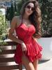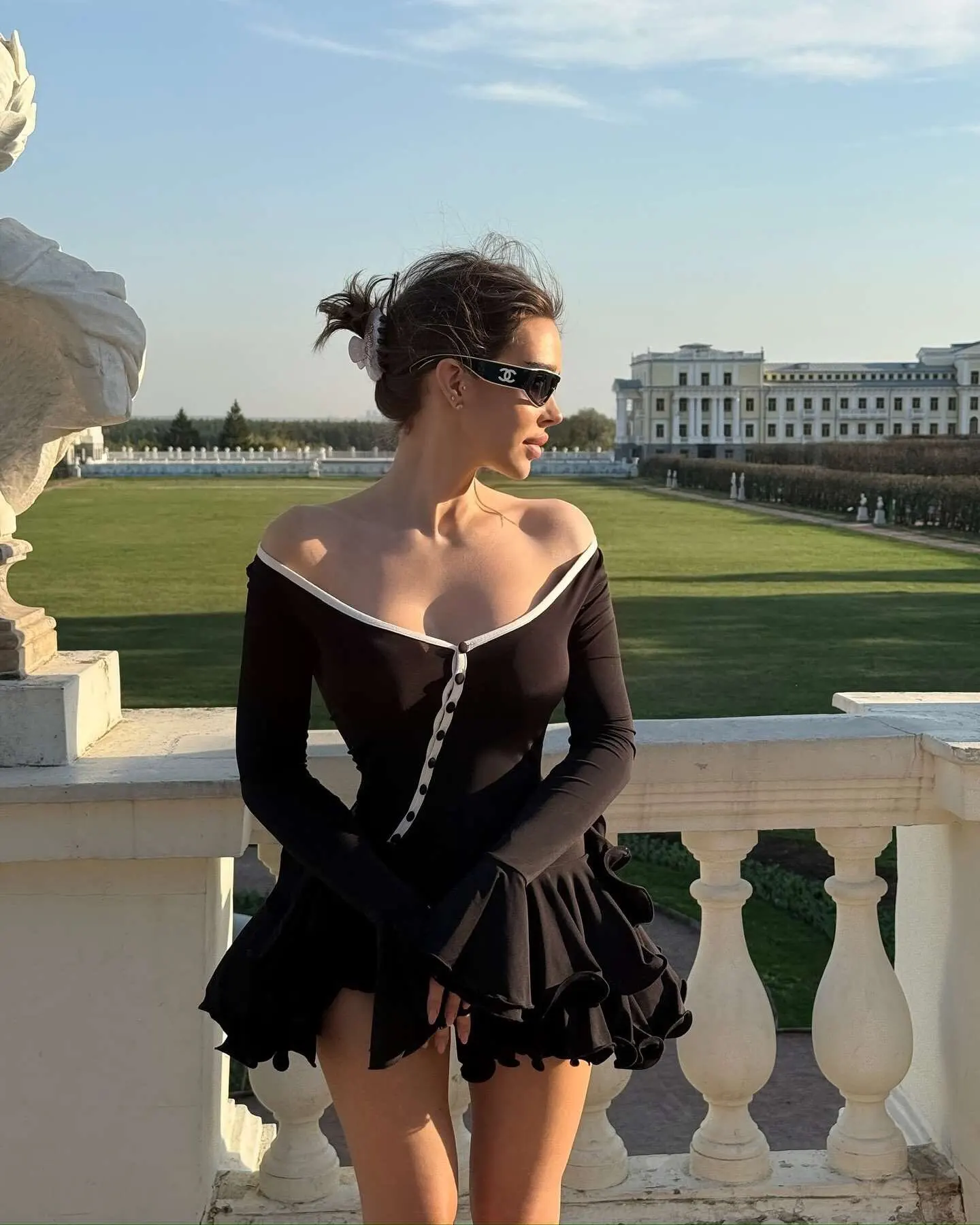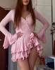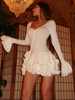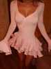 FREE SHIPPING Y2K Women Mini Dress Flare Sleeve Ruffle High Waist Club Dress JKP7318