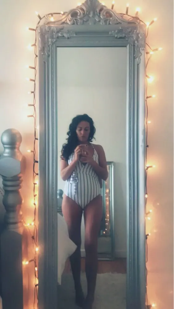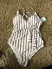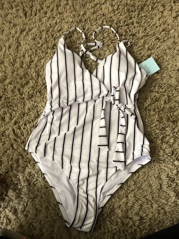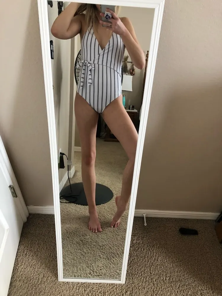 I love this swimsuit! I got a size small, I wear a 32 B and a small in underwear, and this swimsuit fits me perfectly! The only thing that I'm sad about is a sewing error (as seen in photo) but other than that it's perfect! The quality is super nice and It is not see through!! Shipping took awhile, about 2 weeks. I would highly recommend this swimsuit! 10/10
