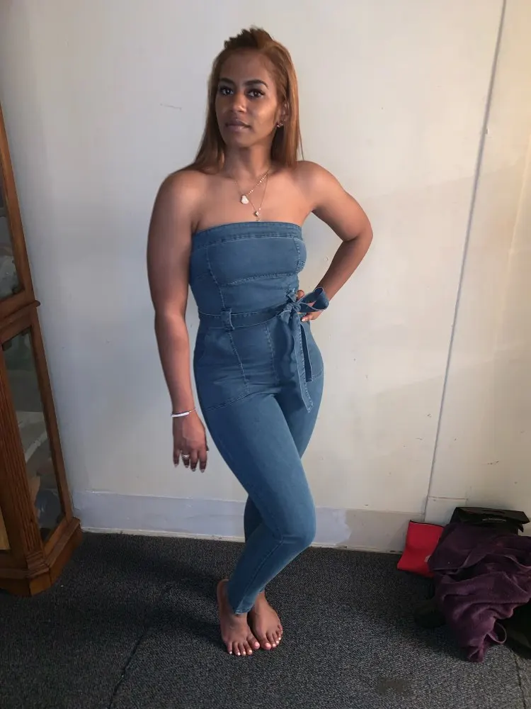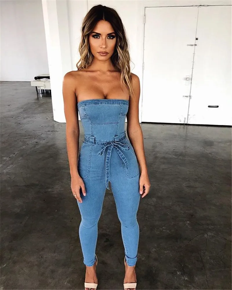 FREE SHIPPING Zipper sexy denim jumpsuit long women romper bodycon summer jeans overalls Casual fashion off shoulder party club wear JKP1916