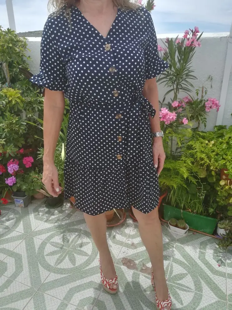 Very nice dress. Soft and lightweight fabric, will be comfortable to wear during the summer. Delivery exactly on the scheduled date. Thanks to the store. ^ _ ^.