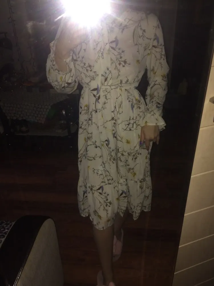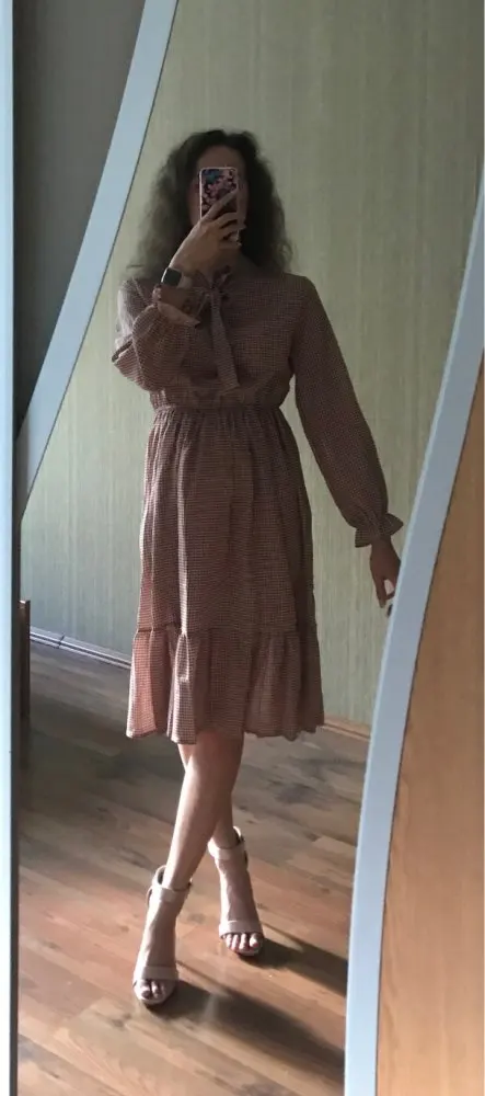 The dress is wonderful! Quality sewing, light chiffon, the color is pleasant (shades of brown), feminine silhouette. Delivery is almost a month to the urals, and after courier sdek to the door! At height 165 length to the end of the knee, sleeves 3/4. Sewing such that it will suit girls with wide shoulders (like me, but in the shoulders sits perfectly!) in the sun a little shines through, because. There is no lining, but because of the pattern on the fabric, only the silhouette is visible. Very satisfied with the purchase, i recommend! Be sure to take in a different color)