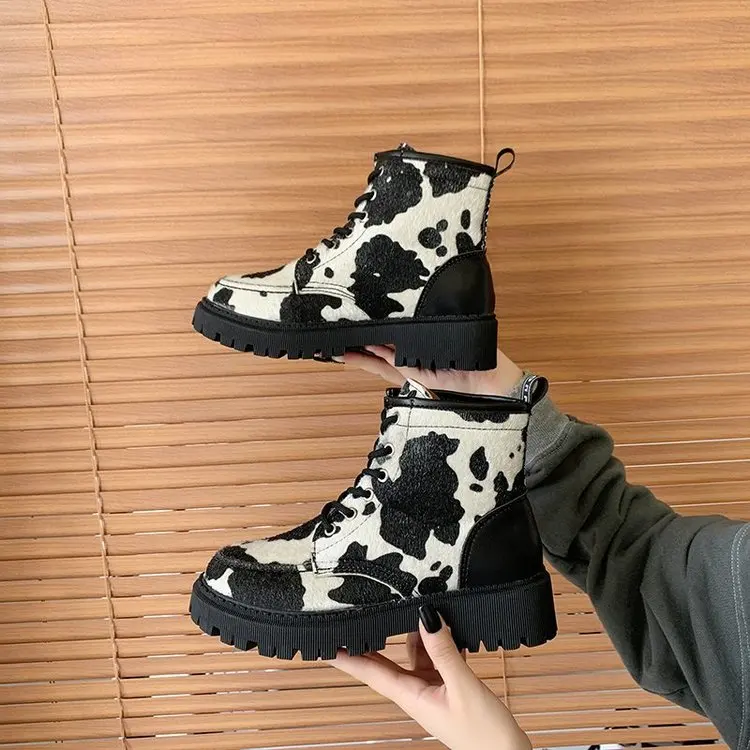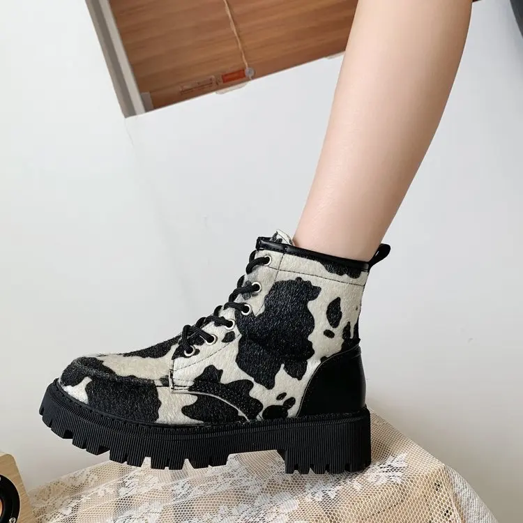 FREE SHIPPINHG Women Motorcycle Boots Cow Pattern JKP4620