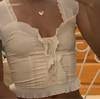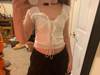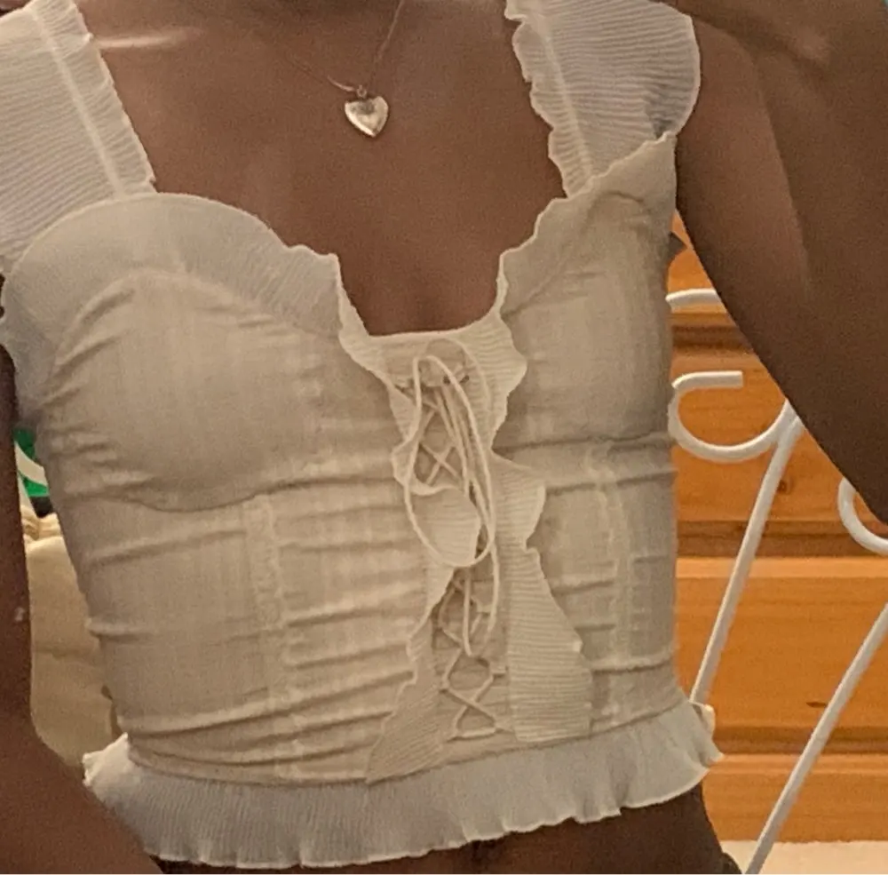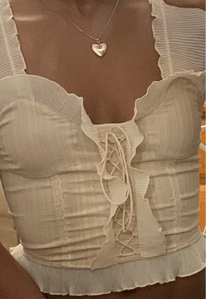 Love this item! looks 100% like the picture and is great quality. I only wish I would’ve gotten a L so I wouldn’t have to wear a bra with it but I got an XL because I wasn’t sure if the material had any stretch to it or ran small. It does have a little bit of stretch and seems to be true to size. It doesn’t come laced up so don’t throw away the rope like i almost did. Shipping was also super fast. I expected it to get here around the end of March or early April but it got here in just about a week or so.