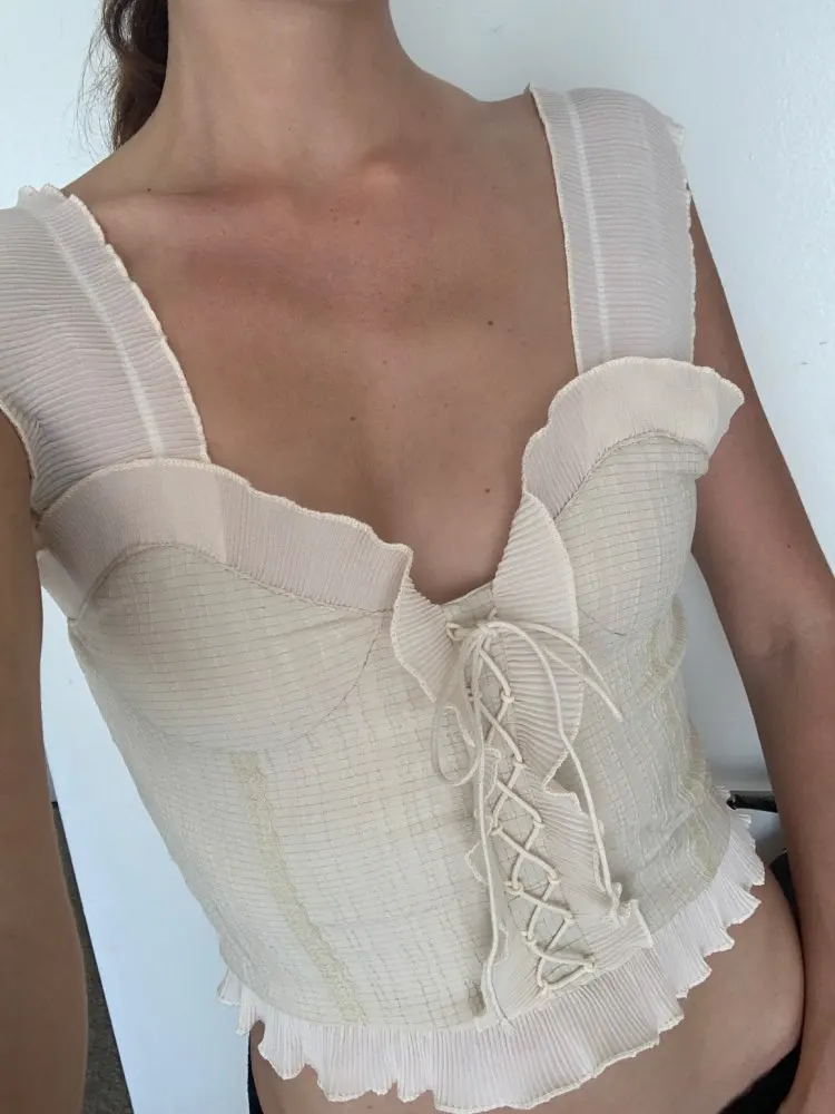 So cute! I ordered a size small. I’m 5’4” 110lb 32B. The boob area stitching (pictured) is for sure too small. But I don’t really mind it. The straps can also be worn off the shoulder and looks really pretty.