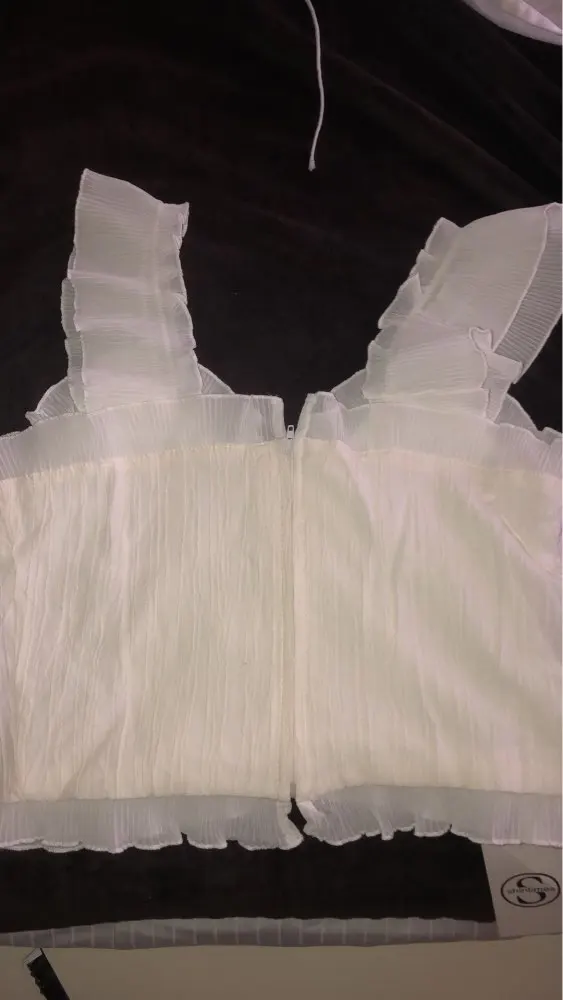 This top looks exactly like the pictures, so beautiful! The only thing i would say is that it is pretty tight fitting. I would suggest going up a size from what you usually wear. That way it would fit comfortably. <3
