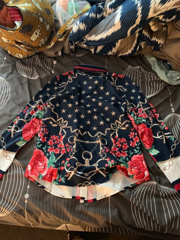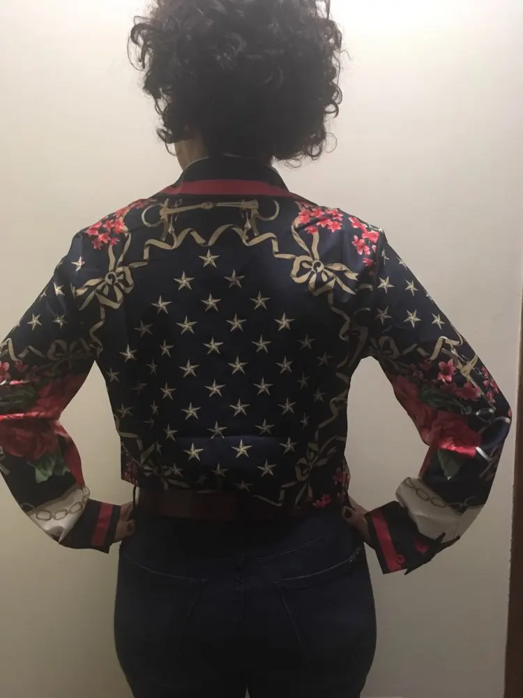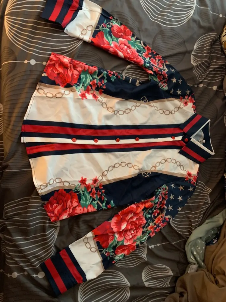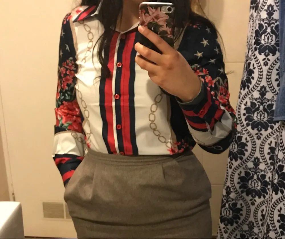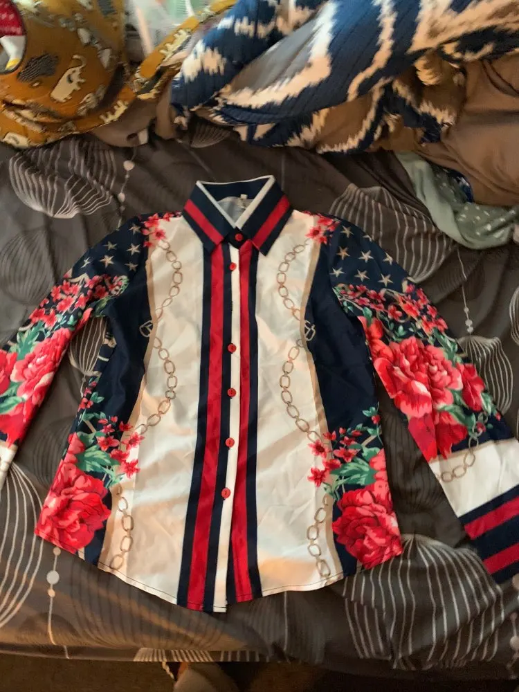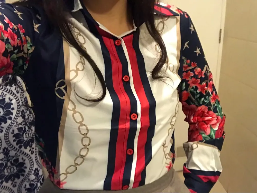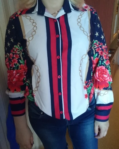 Blouse beautiful synthetic material, use size 38 or 40 in Brasil and bought the size XL. Was great