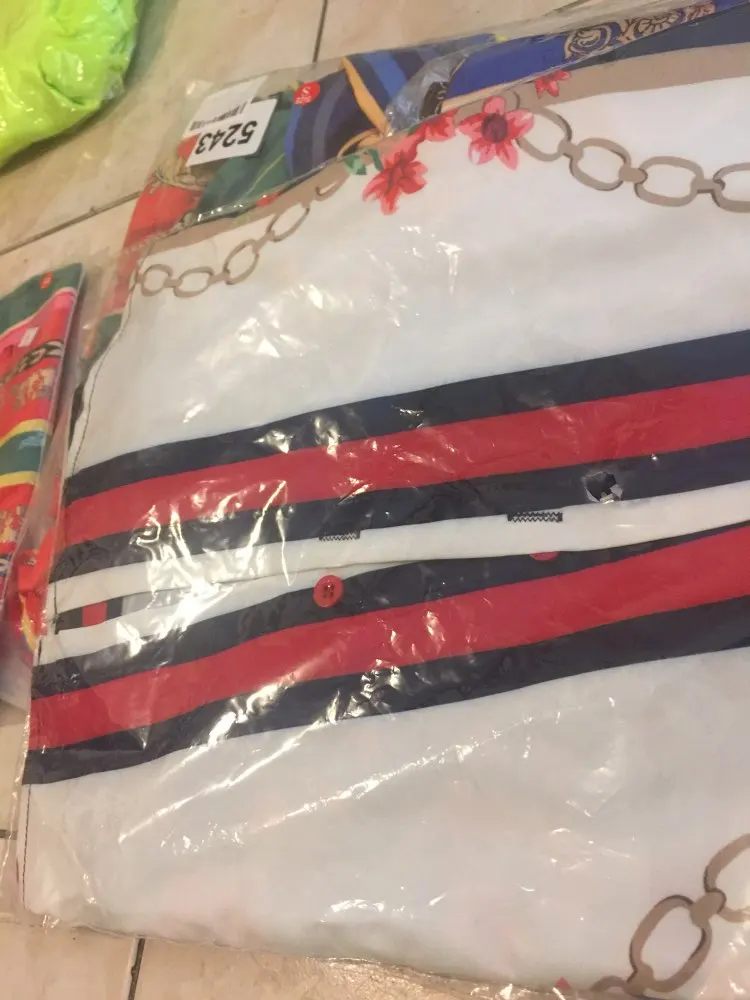 Colourful, like in the pictures, fabric is a bit thick and artificial but nice to the body. Many thanks to the store for choosing the right size for me.