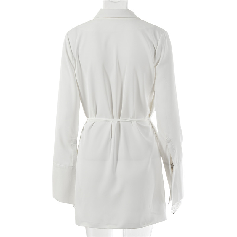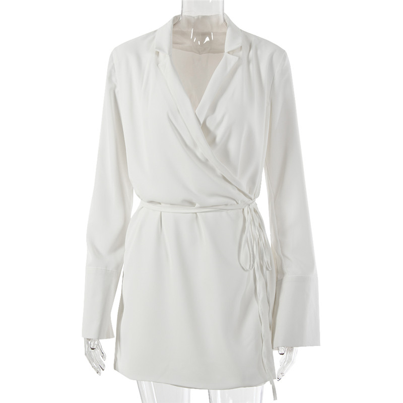 FREE SJIPPING Women Mini Shirt Dress Satin V-Neck Flare Sleeve Lace Up JKP5869