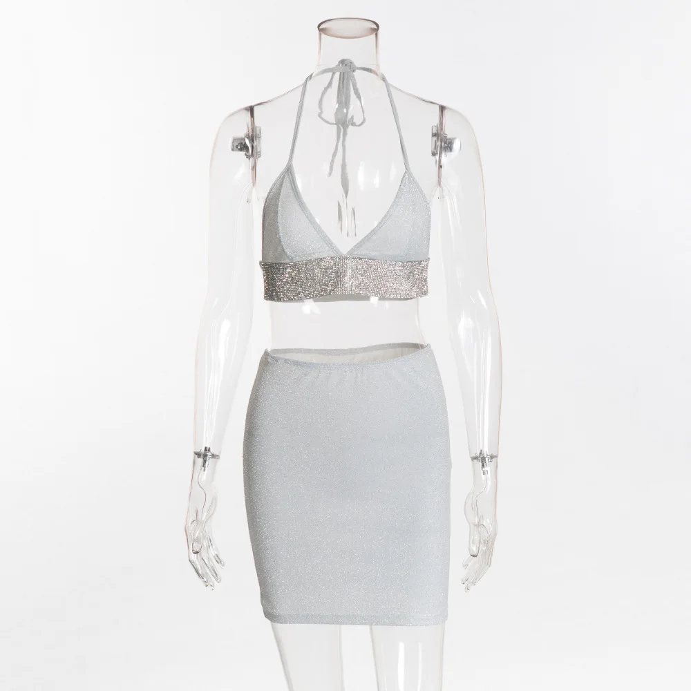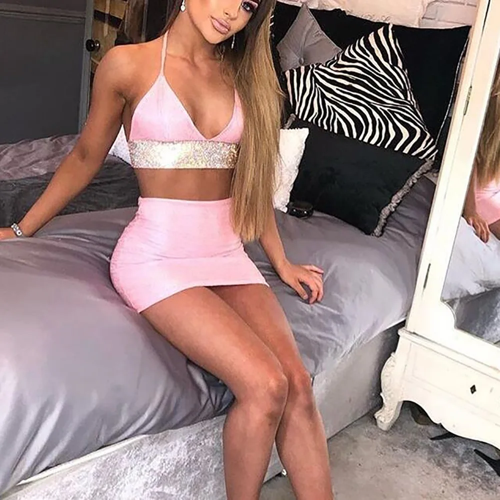 FREESHIPPING Sequin Sparkly Bodycon Dress Club Two Piece JKP1384