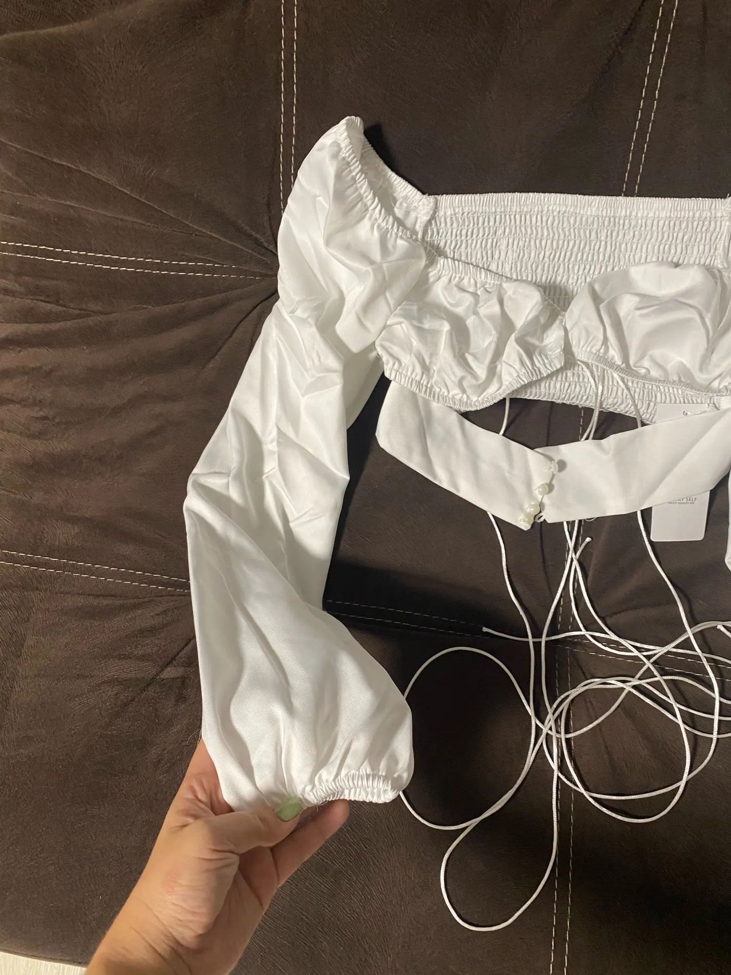 Beautiful top!!! Very hard to tie at first and I needed to cut the strings off a bit as they’re way too long but it’s the cutest summer top I bought in a while. Came really fast too!!