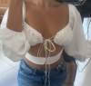 French Romance White Crop Tops JKP4498