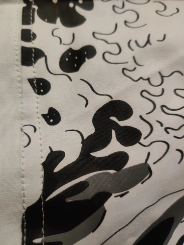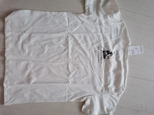 Arrived very quickly, I was a little scared with the opinion of others but finally it goes. The printing looks like screen printing more clearly (I compared with one of my French T-shirt that makes screen printing). It's rigid and smooth as if we had glued a light sticker... But not embarrassing. It is in dimensions as indicated and it is cotton. I wanted to make a long tunic but I recommend more a size above for that just for the length (I do 1m56 and slightly round corpulence). It is very white (it was night when I took the picture).